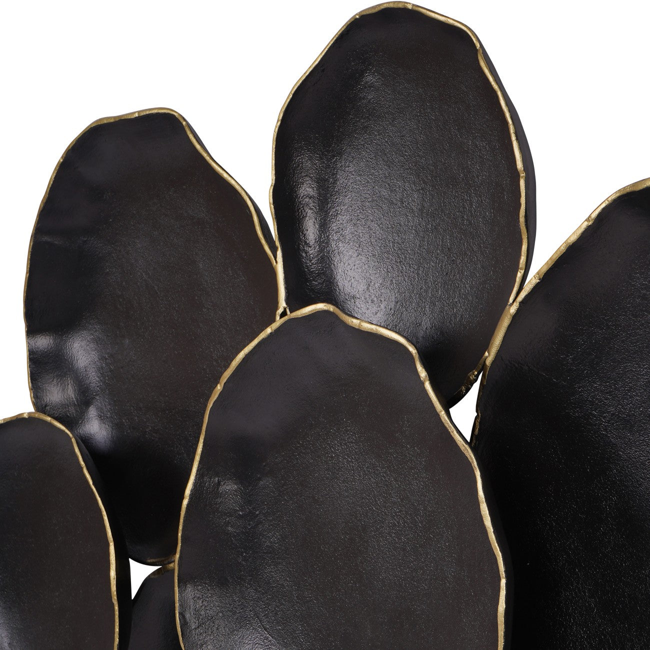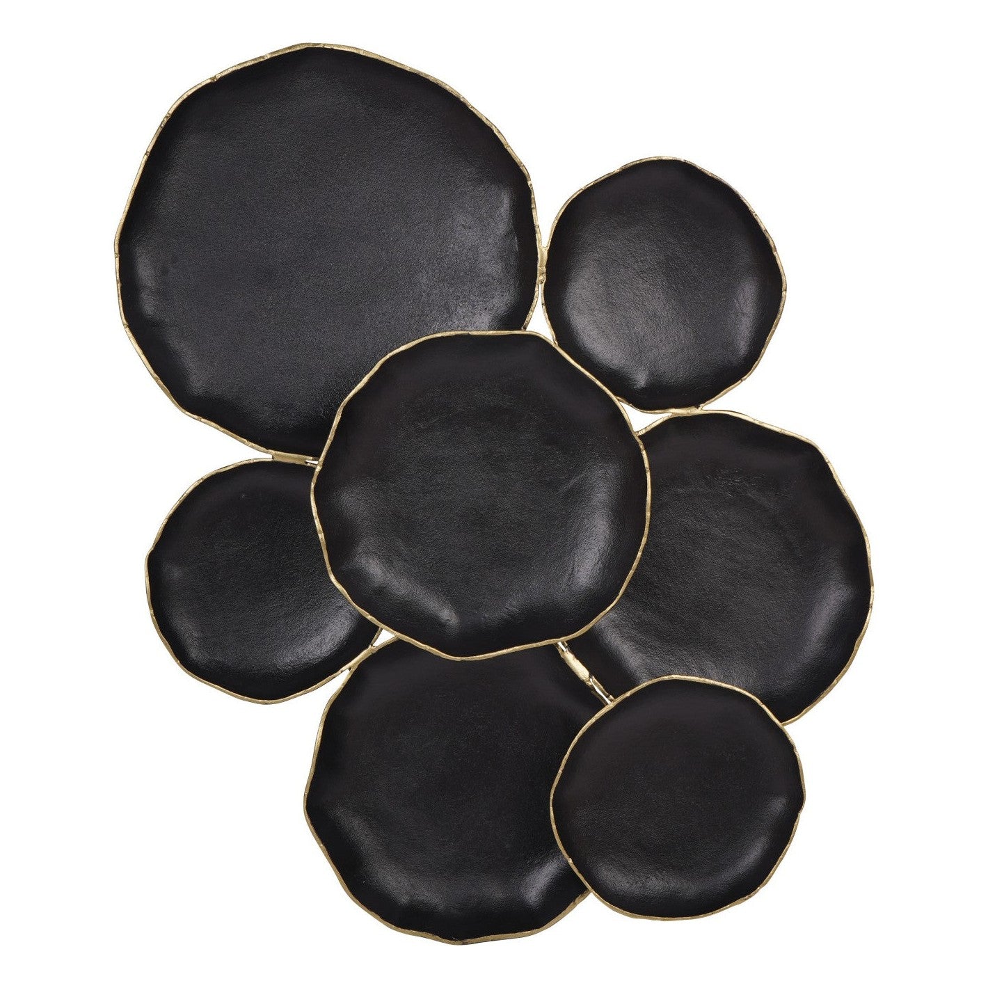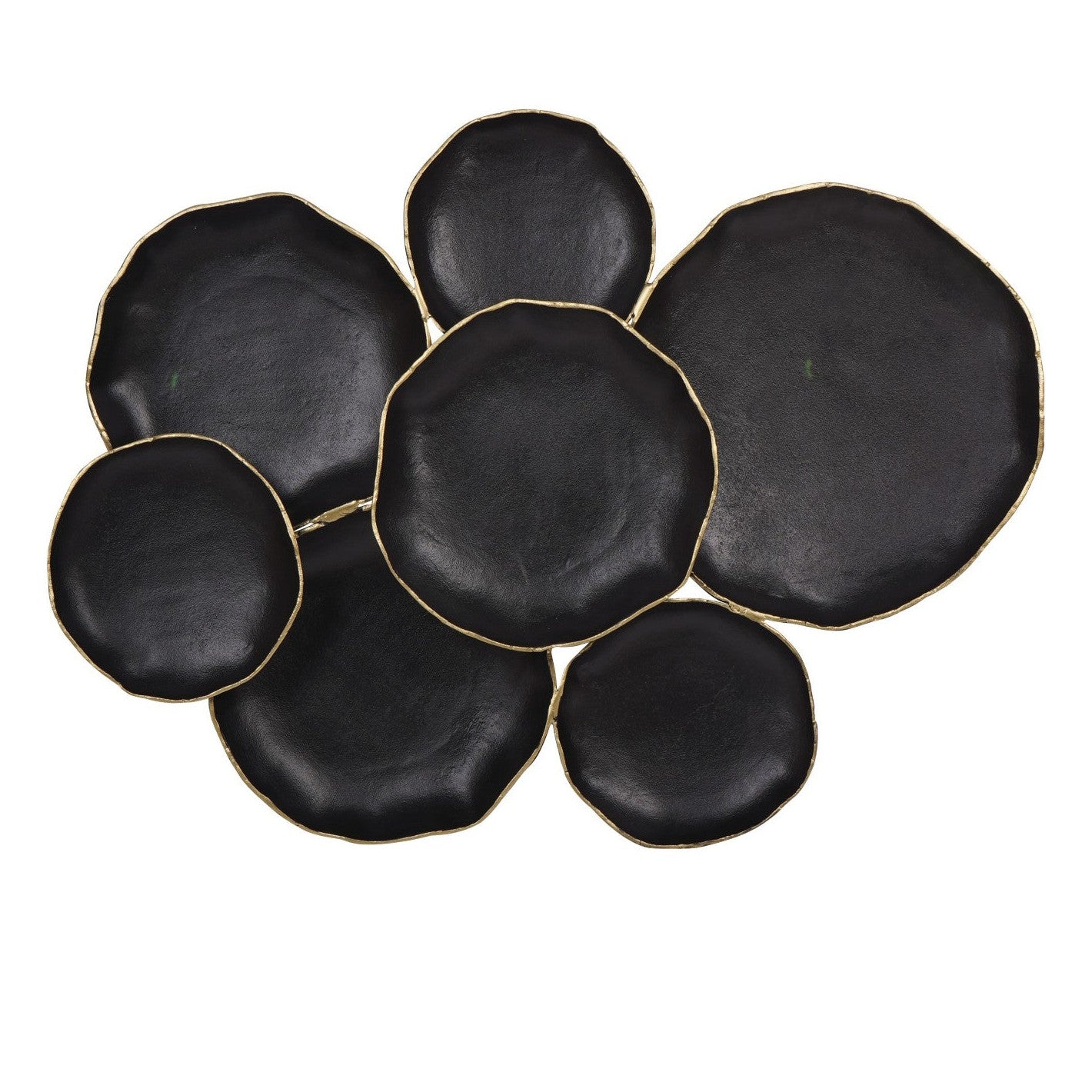 The Arlow Matt Black Wall Art brings a dynamic and modern aesthetic to your space with its freeform, round fluid discs outlined in subtle gold edges. Handcrafted from cast aluminium, the matt black finish offers a striking contrast to the gold accents, creating a sophisticated and contemporary look. The organic shapes add a sense of movement and texture, making this piece a captivating focal point. This item can be hung in landscape or portrait orientation and is also available in a 5-disc version. This item must be installed by a professional using the appropriate wall fittings.