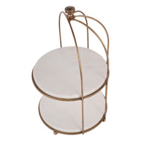 The Belvedere Aged Gold Two-Tier Buffet Stand makes a striking statement piece in both traditional and modern interiors. Designed with two tiers to hold a variety of items, from food to décor, the two-tier design provides ample space for a stylish and functional display. The rich aged gold metal frame and White Banswara marble are a sophisticated combination. A single-tier, two tier and multi-tier circular buffet stand are all available as part of the Belvedere collection.