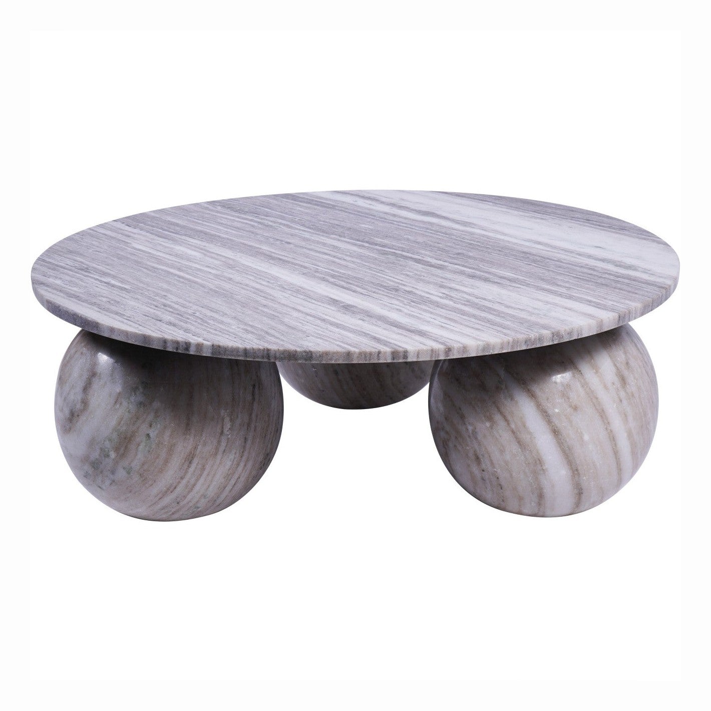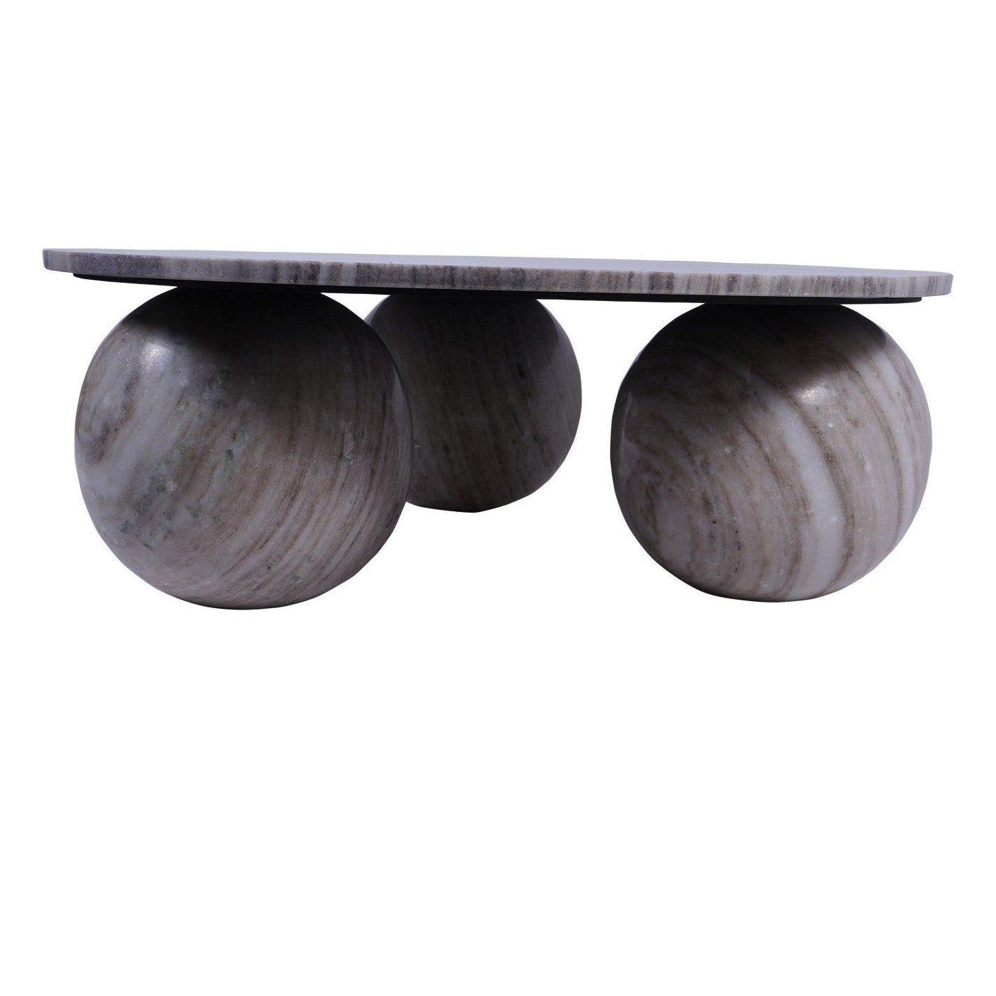 The Handcrafted Salento Marble Coffee Table features a stunning marble top showcasing unique veining patterns and warm, earthy tones, making it a perfect addition to any space. Handcrafted by skilled artisans, this table reflects exceptional craftsmanship and attention to detail. What truly sets this table apart is its bold, sophisticated base. The trio of heavy, round polished marble feet, each with its own distinctive veining, creates a luxurious contrast to the sleek marble top. Its presence will undoubtedly enhance the beauty of your interior, offering both practicality and striking aesthetic appeal. A small amount of assembly is required to align the feet and ensure stability.