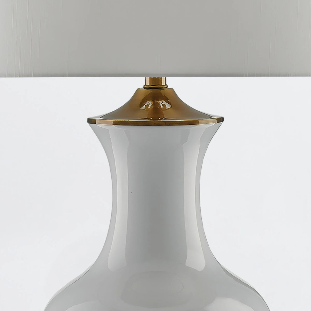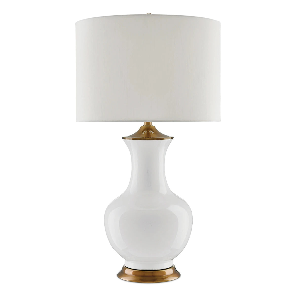Serenity has a profile in the Lilou White Table Lamp with its lovely vase-like shape. Made of white porcelain with metal hardware in an antique brass finish, the lamp is topped with an off-white shantung drum shade. The Lilou is one of our most popular designs by Tom Caldwell.