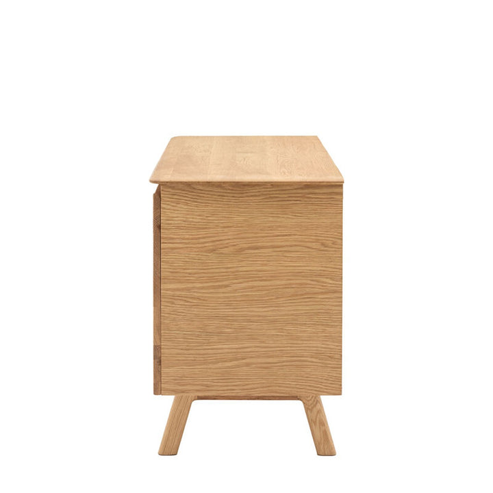 This 2 door sideboard is a stylish and functional addition to the Madrid range, inspired by mid-century modern design. This sideboard features two spacious doors that provide ample storage space for your belongings. The clean lines and tapered legs create a minimalist and modern look, while the natural wood finish adds warmth and character to any room. Perfect for use in the living room, dining room, or hallway.