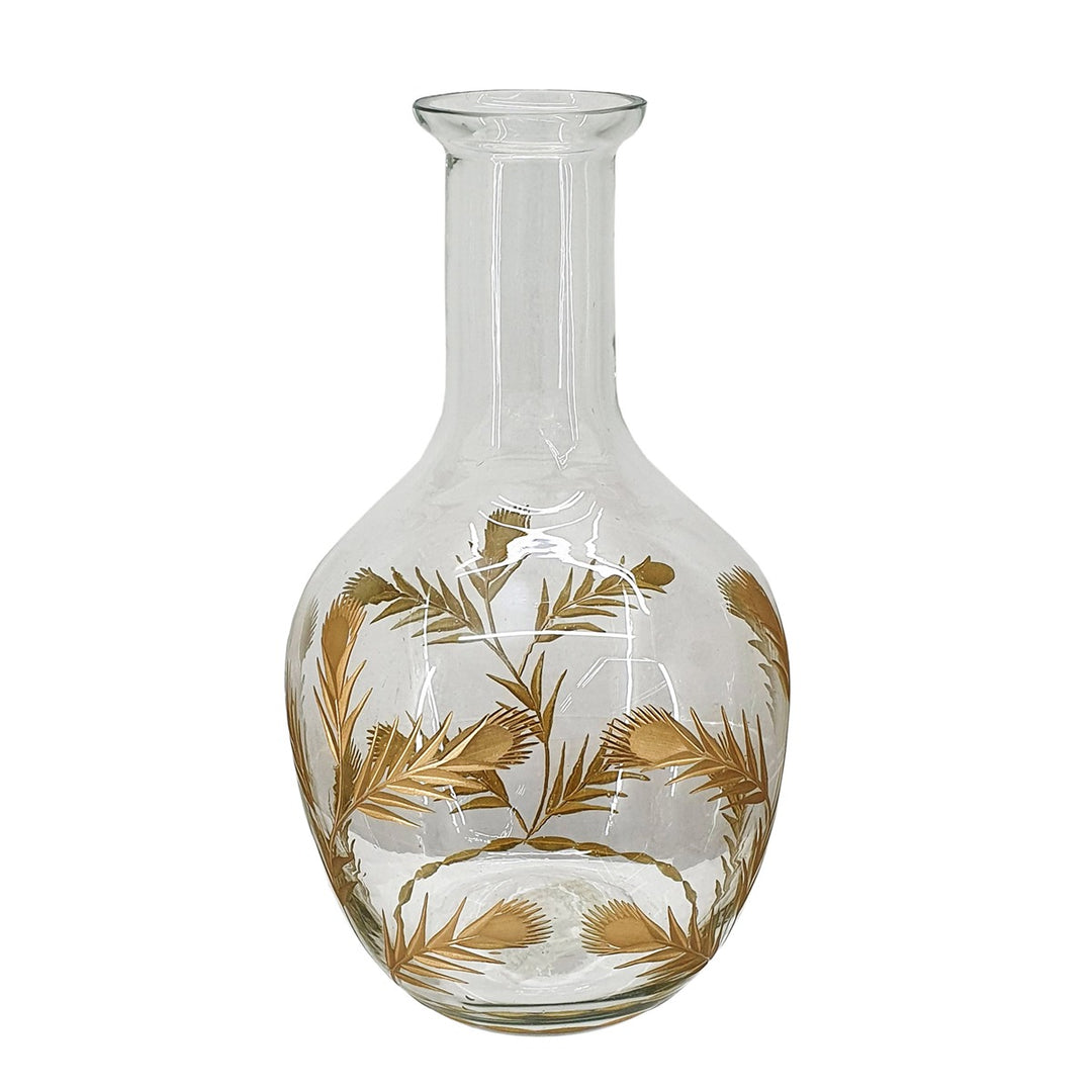 Expertly crafted and designed, the Margo Vase Small is a stunning addition to any home. Made of clear glass and adorned with delicate gold leaf detailing, this vase adds a touch of elegance to any room. Elevate your decor with this beautiful piece.