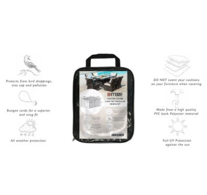 The Winter Cover for our 6 Seat Rectangular Dining Set is the ideal winter protection for your garden furniture. Manufactured from our premium breathable fabric, we can guarantee our covers will provide superior protection from the elements. All of our furniture covers are packed with cord strings. To secure your cover simply thread the cord strings through the eyelets and loop back round the feet of your furniture. Please note all furniture cushions should not be stored underneath any of our covers. We recommend you keep your cushions stored in a dry location.