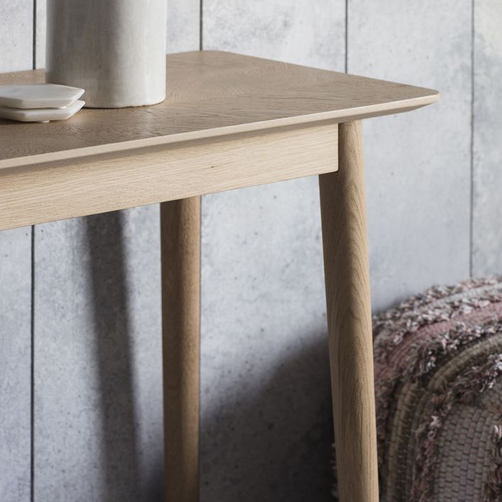 This stunning console table features a beautiful inlay chevron design, and is made using European oak and rustic oak structured veneers which show the natural beauty of the oak grain and knots. Finished in a specialist mat lacquer, which keeps the timber looking natural and dry, with brushed out grain, the table is tactile to the touch and looks amazing. The console table looks great with the coordinating mirror above it.