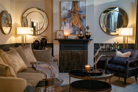 This stunning wall art features a contemporary canvas framed in gold, depicting an abstract mirage of greys and off-whites with bold gold accents at the center. This modern piece is perfect for adding an instant focal point to your interiors, enhancing the overall aesthetic with its striking design. Colour Scheme: Grey, off-white, and gold. Styling Tip: Hang the Lyra Wall Art in a prominent location, such as above a sofa or entryway, to draw attention. Pair it with other artwork or decorative elements in neutral tones to create a balanced and sophisticated gallery wall.