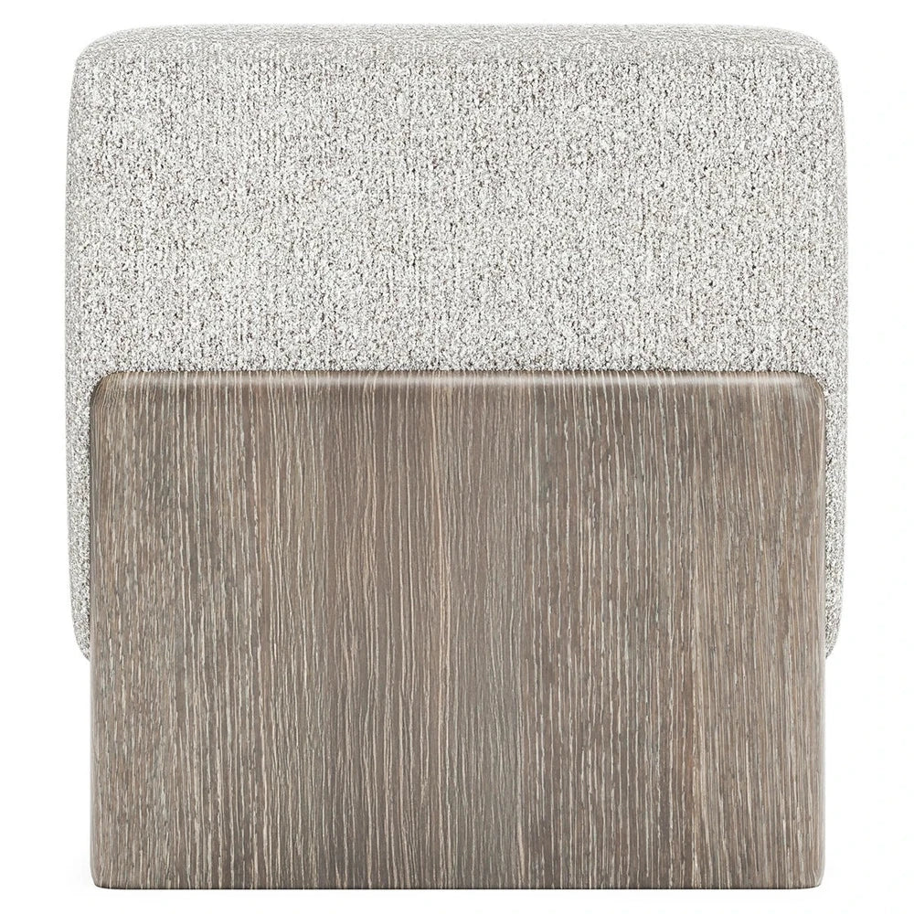 Additional Information: Wirebrushed oak base panels in Puma finish supporting upholstered seat Standard with performance fabric B158 Adjustable glides Specifications subject to change without notice