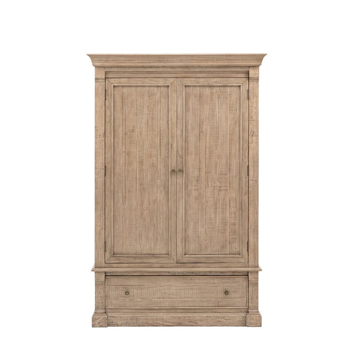This wardrobe is a timeless and elegant piece of furniture that adds a touch of classic style to any bedroom. Its solid wood construction and intricate detailing create a sophisticated look, while the spacious storage space provides ample room for clothing and accessories. The neutral color and versatile design make it a perfect fit for a variety of interior styles.