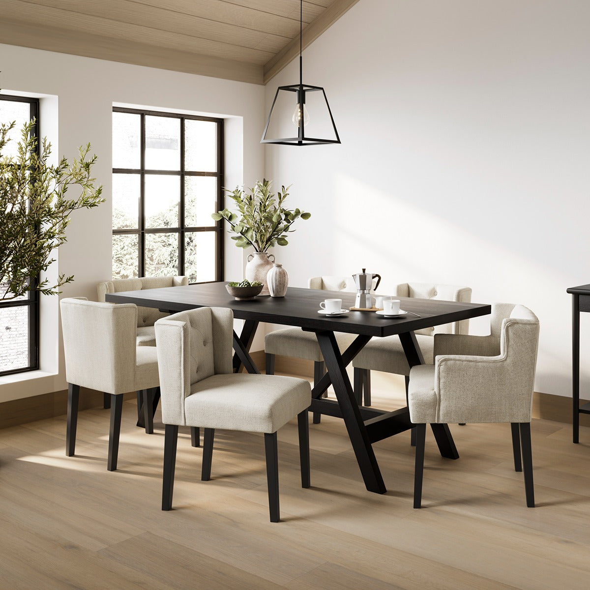 The Ari Dining Chair presents a choice between two distinct styles: with or without arms, catering to your personal preferences and dining needs. Whether you prefer the added support of armrests or the sleek silhouette of an armless design, both options promise a luxurious dining experience.