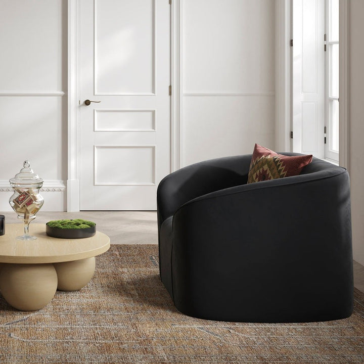 The O&Co Marni Armchair in Black Velvet introduces a touch of sophistication and comfort to your living space. Designed to make a bold statement, this elegant armchair features a unique curved shape that adds a modern twist to traditional seating arrangements. Perfect for creating an inviting focal point, the Marni armchair enhances any room, be it your living room, lounge area, or home office, with its chic and refined style.