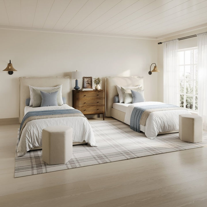 The O&Co Shiloh Single Bed in Ivory Linen Fabric is a timeless addition to any bedroom. Its neutral color seamlessly blends into any environment, while the unique pillow headboard adds a touch of sophistication. With sprung slats for added comfort, this bed offers both style and support for a restful night's sleep, making it a versatile choice for any bedroom decor.