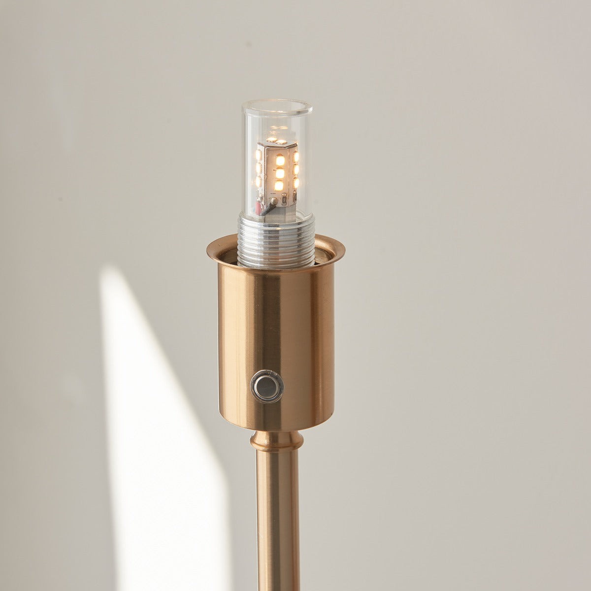 Not tied down with the need for a power cable, this fully portable, battery operated, rechargeable 3 stage touch dimmer floor light enables you to select your own level of light. Classic in style and finished in aged brass making it easy to place around your home. Turns on for low light then touch controlled to increase light level to medium then bright, making it the perfect bedroom addition. Taking just 5 hours to fully charge and giving up to 30 hours of continuous light. Be creative! Place anywhere where other lights cannot reach, a totally versatile addition to your home. Pair with one of our 25cm or 30cm decorative shades for the perfect timeless style.