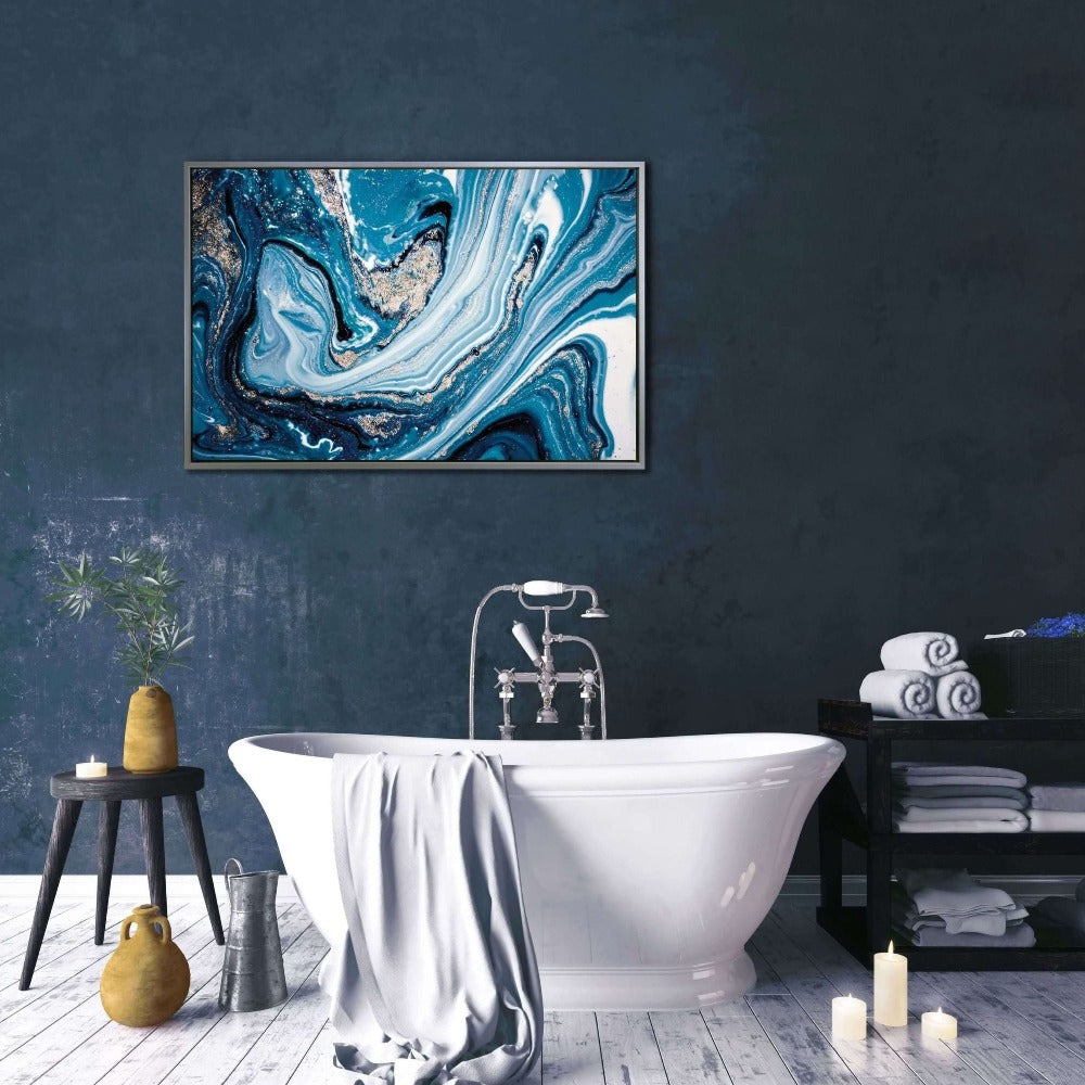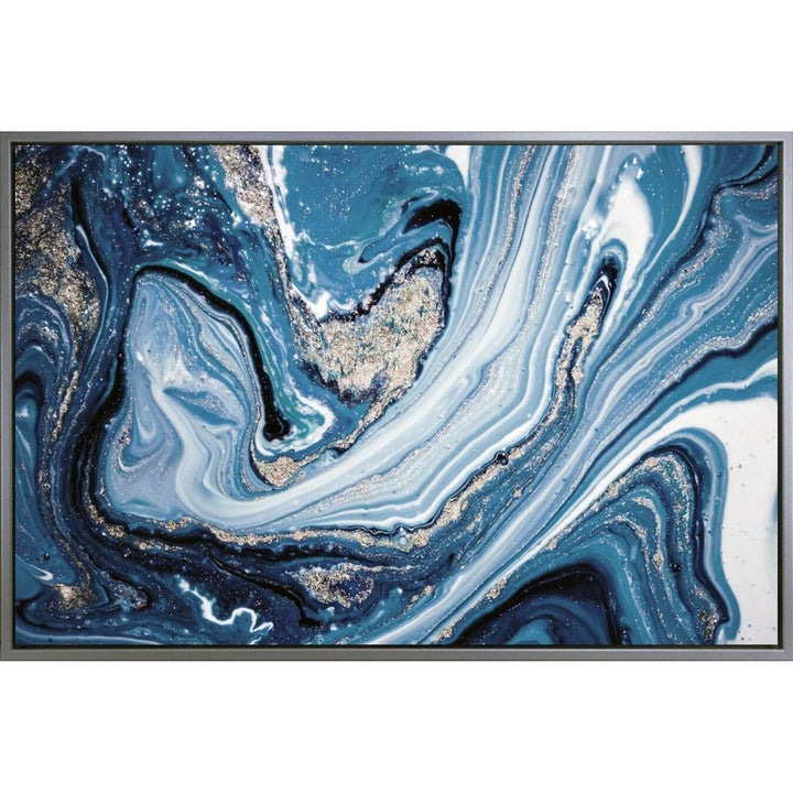 Blue Marble Swirl' - Framed Canvas - 62x102cm