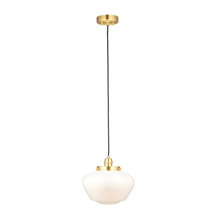 A timeless “school house” styled pendant in brass with opal glass, ideal for the kitchen, above a breakfast bar or dining table. Hang individually or in a set of three. Matching semi flush also available.