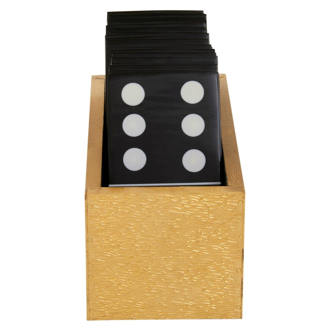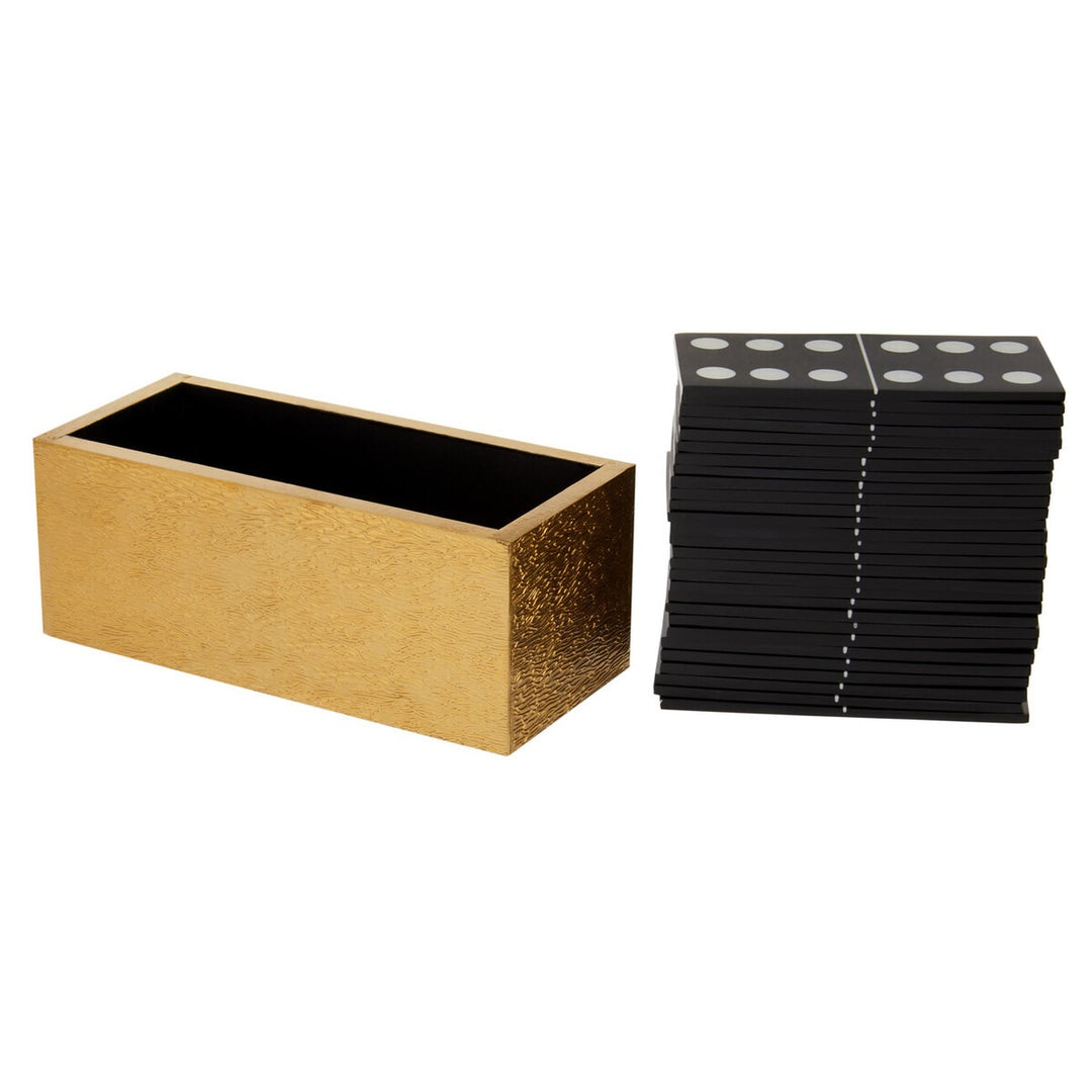 This gold effect domino box is made from premium quality resin and durable MDF. Each playing piece in the black finish is exceptionally crafted and creates a decorative statement on the coffee or side table if not playing.