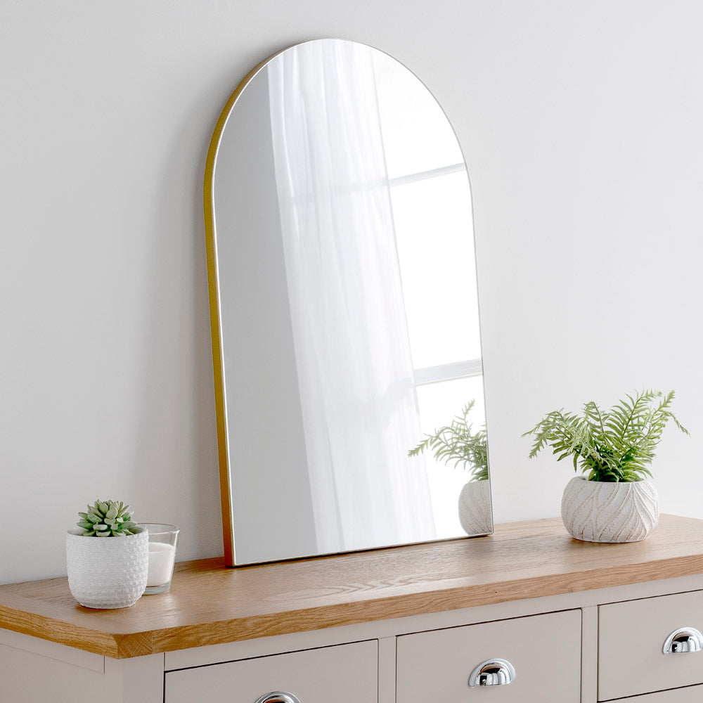Minimal Arched top Vertical wall mirror. Available in a selection of three frame colour finishes to best suit your interior. The craftsmanship is clear to see with it's simple and sophisticated quality of finish. Only the finest quality raw materials have been used to construct this beautifully delicate looking wall mirror.