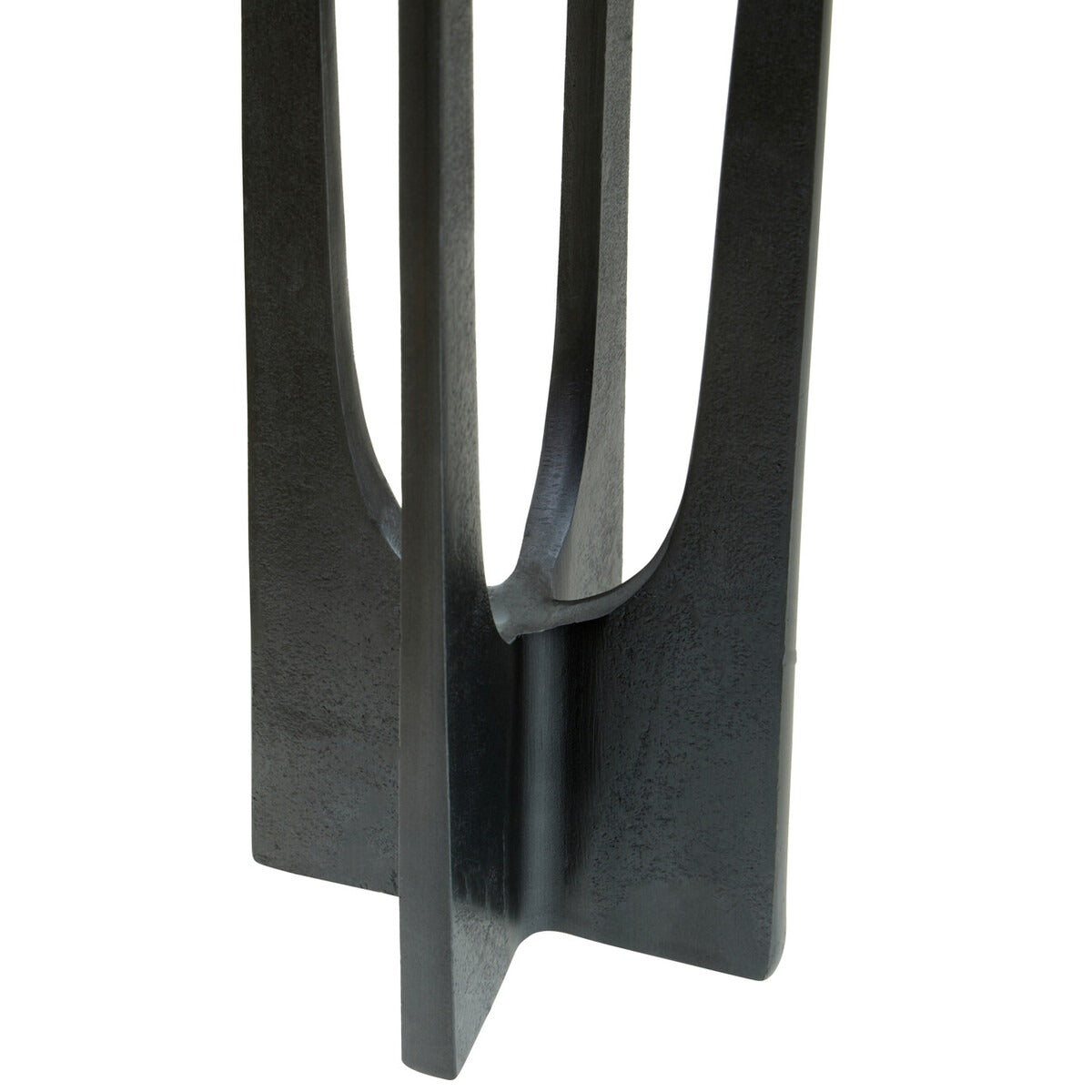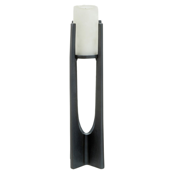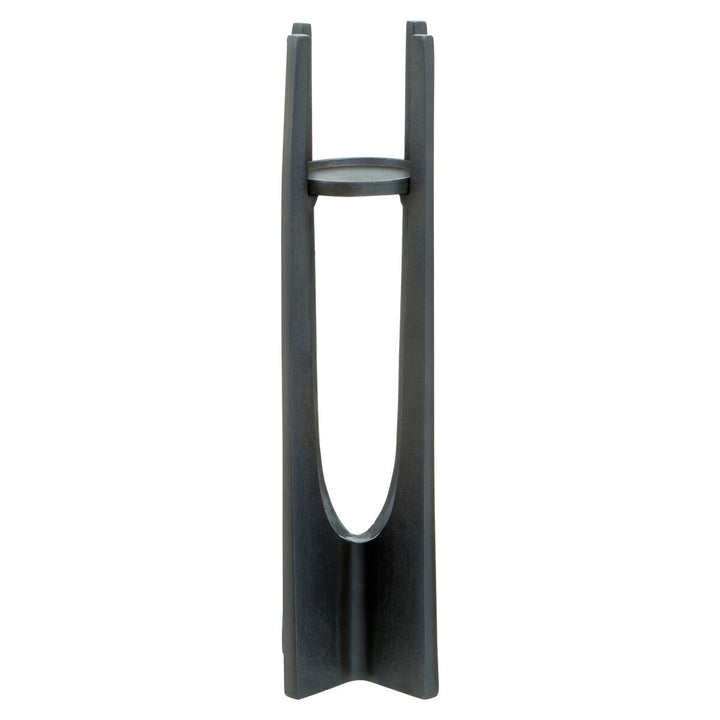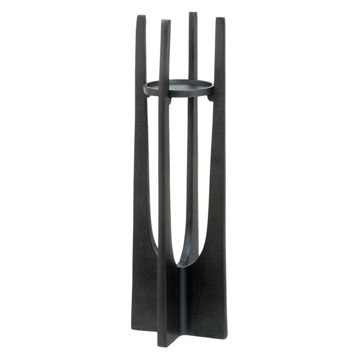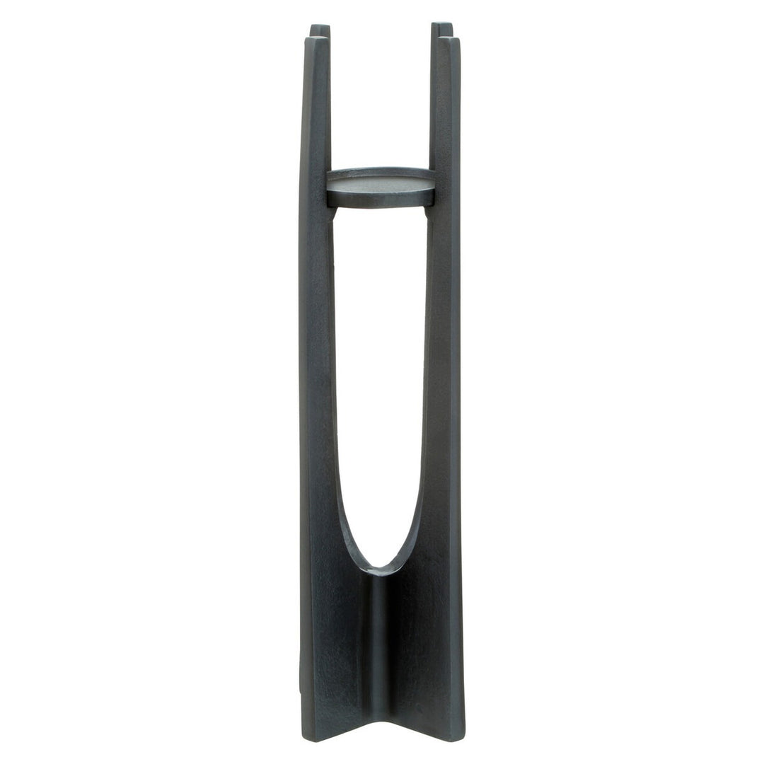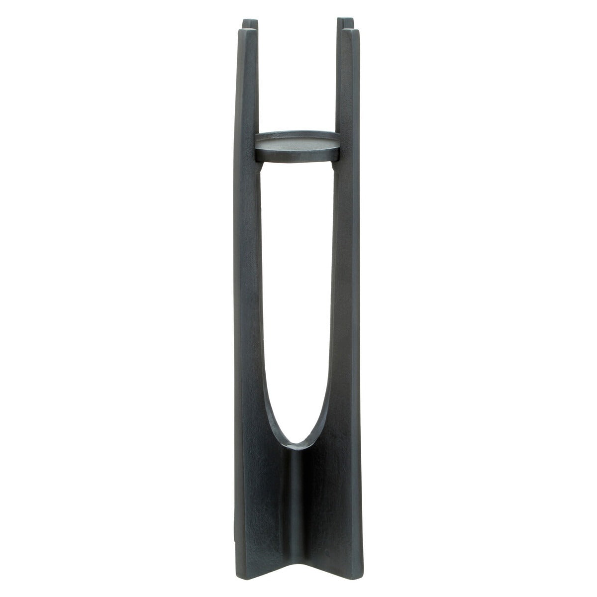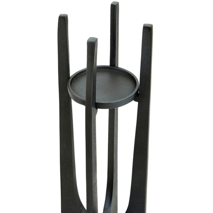 Crafted from aluminium, this large candle holder in accented in a smooth grey finish with hints of distressed effect. A four point trident structure neatly cradles the candle holder at centre, making it ideal to hold pillar candles in style.