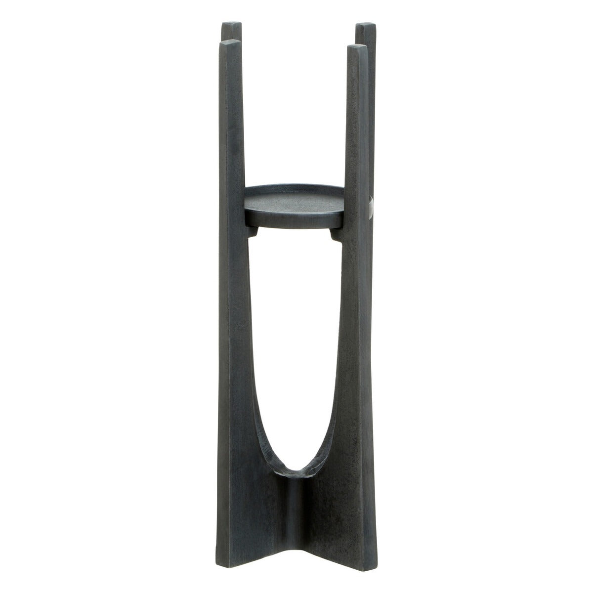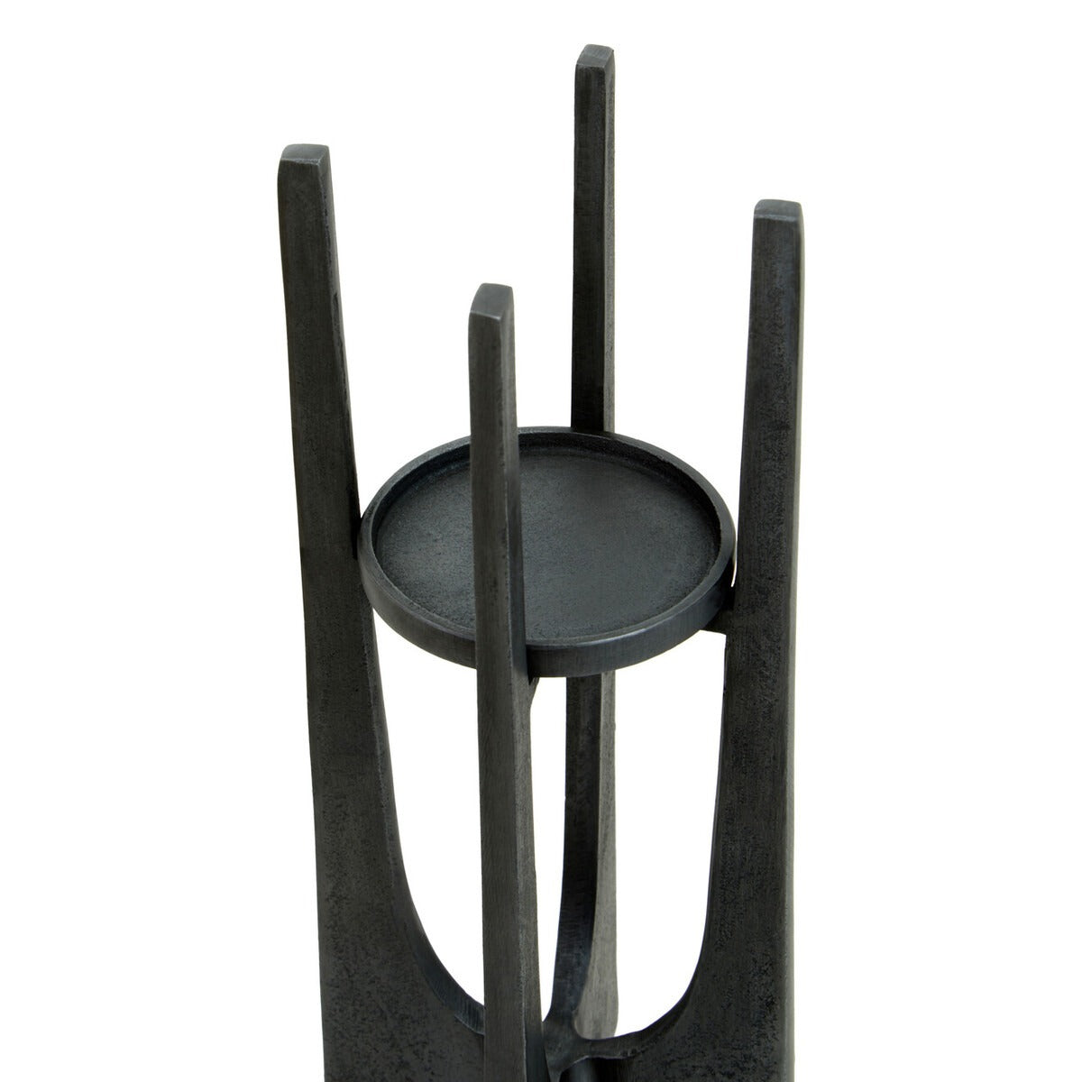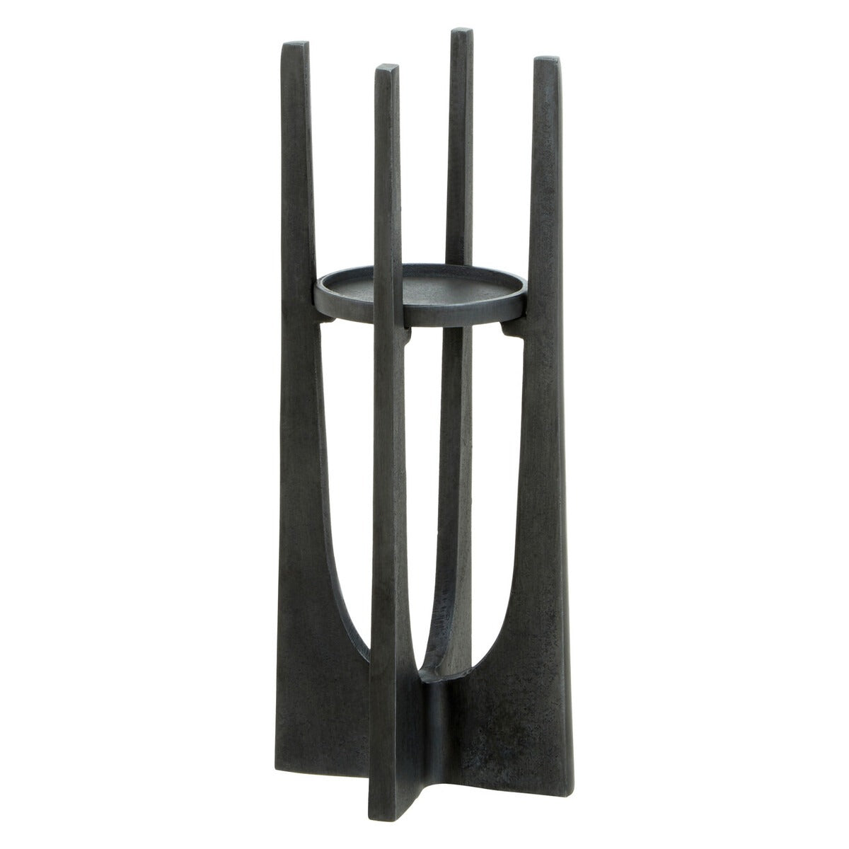 Crafted from aluminium, this small candle holder in accented in a smooth grey finish with hints of distressed effect. A four point trident structure neatly cradles the candle holder at centre, making it ideal to hold pillar candles in style.