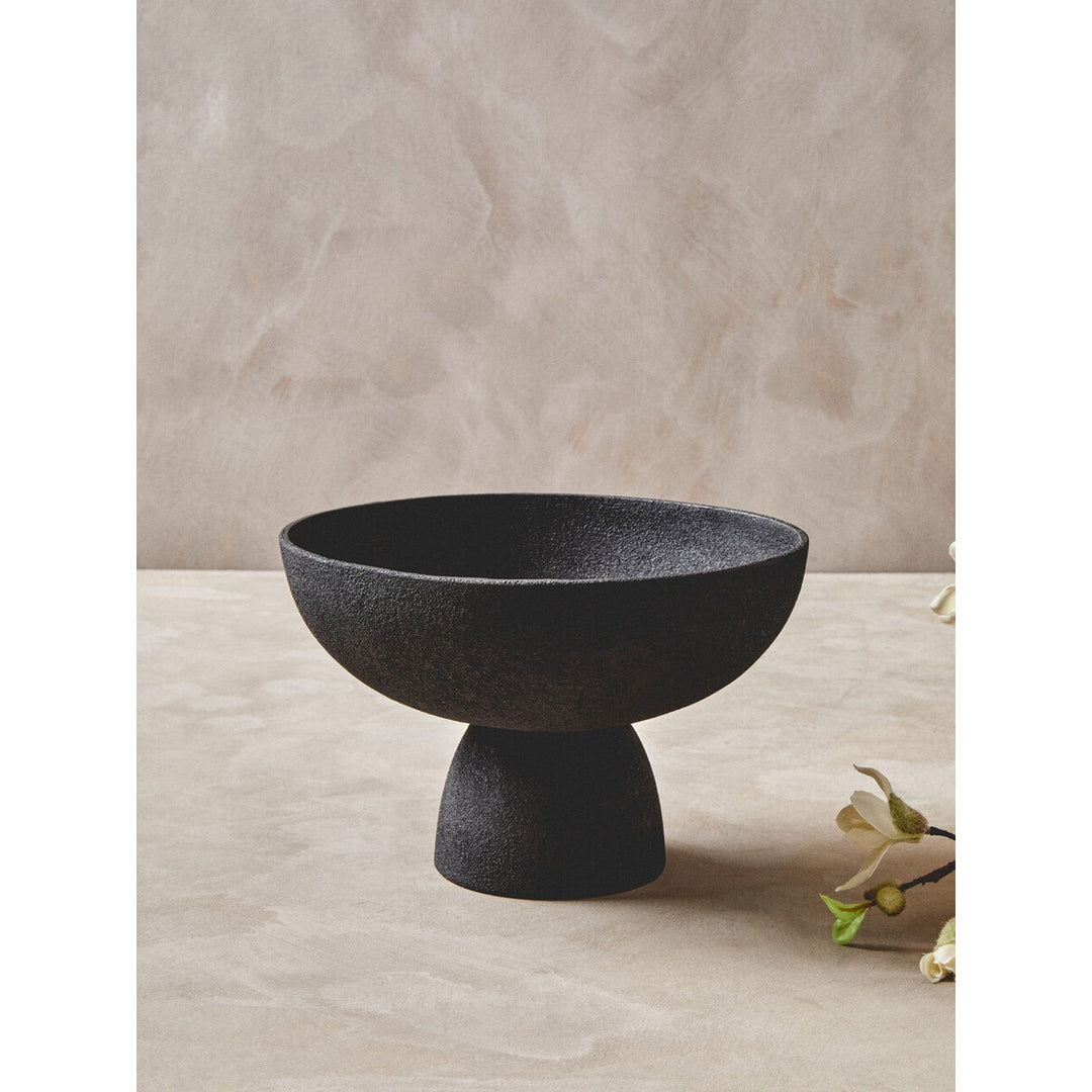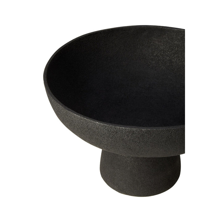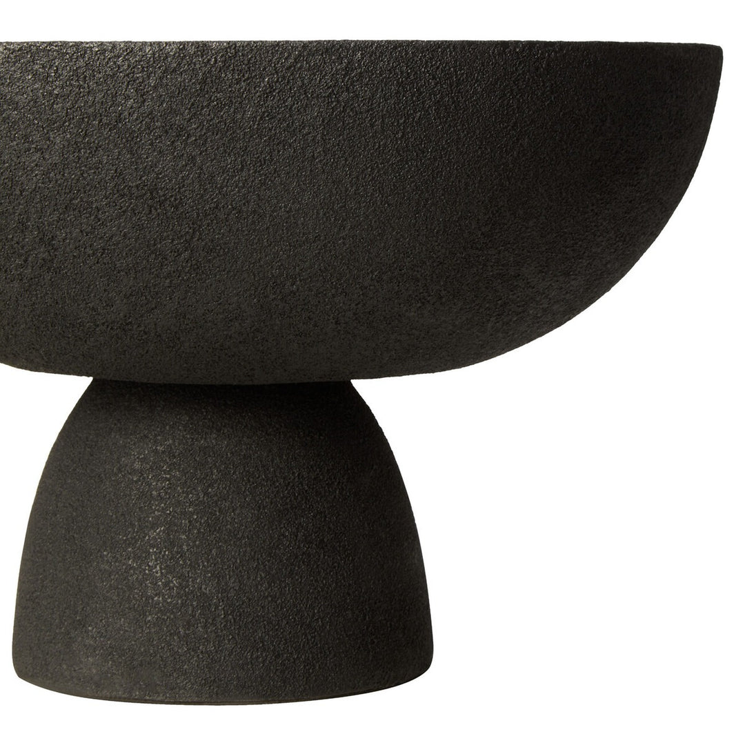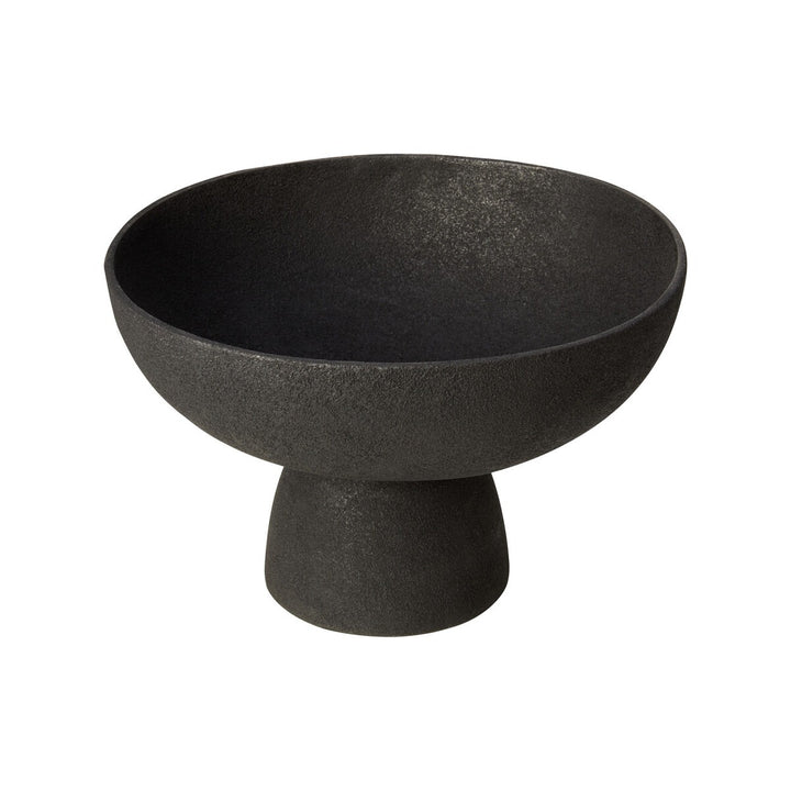 This large aluminum bowl has a sleek textured black finish that effortlessly complements any decor. The bowl's pedestal base contributes to the aesthetic appeal and adds stability.