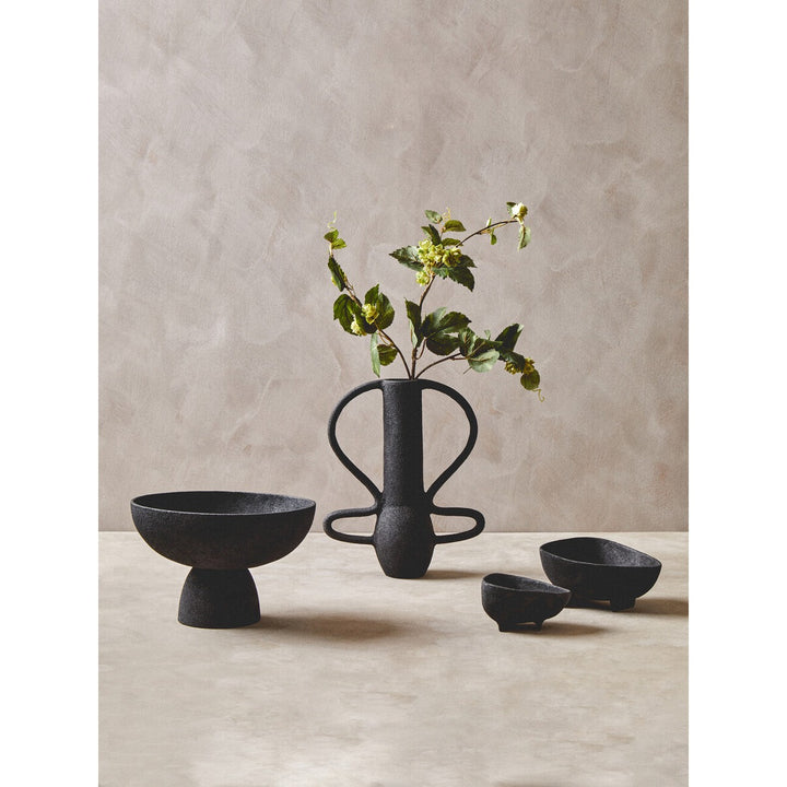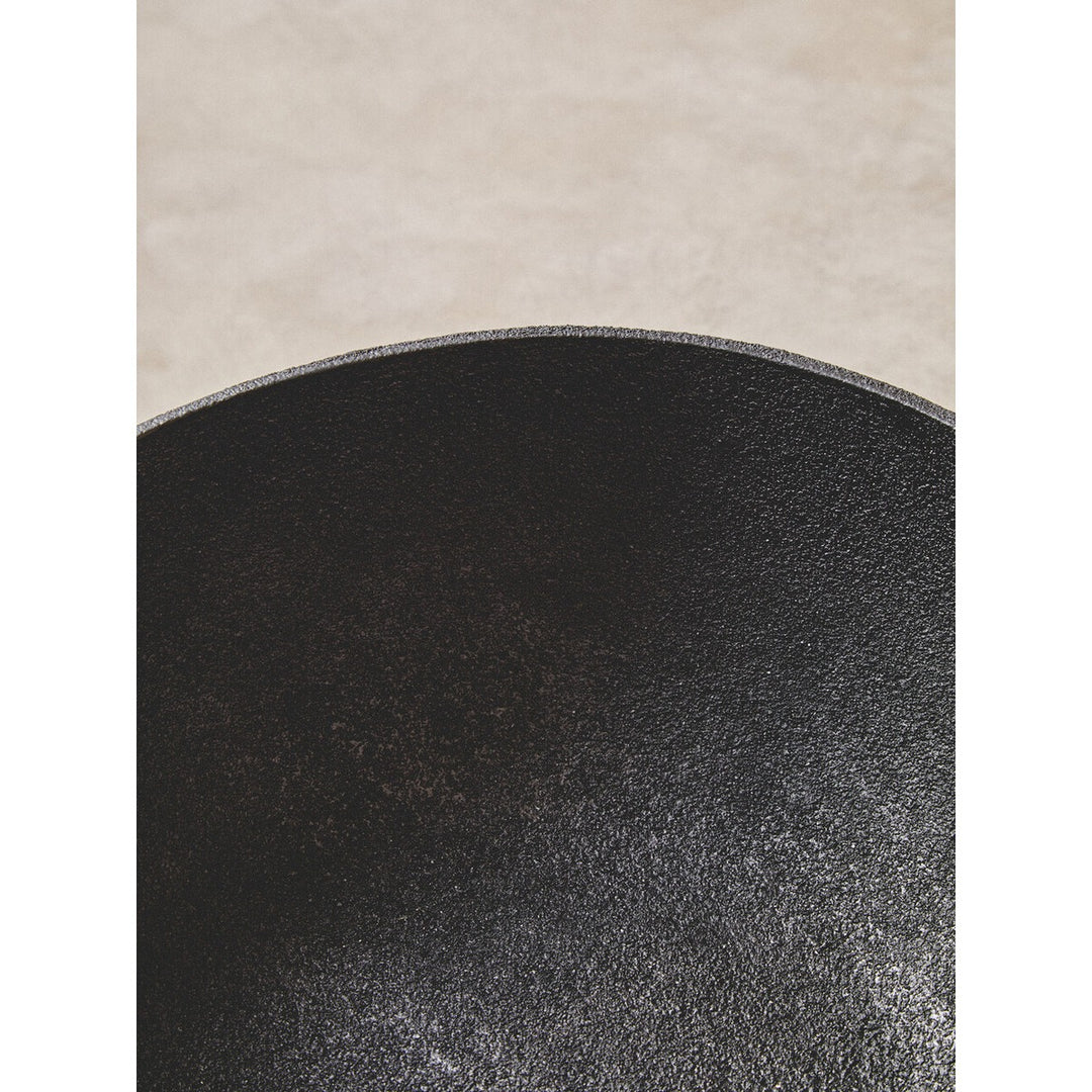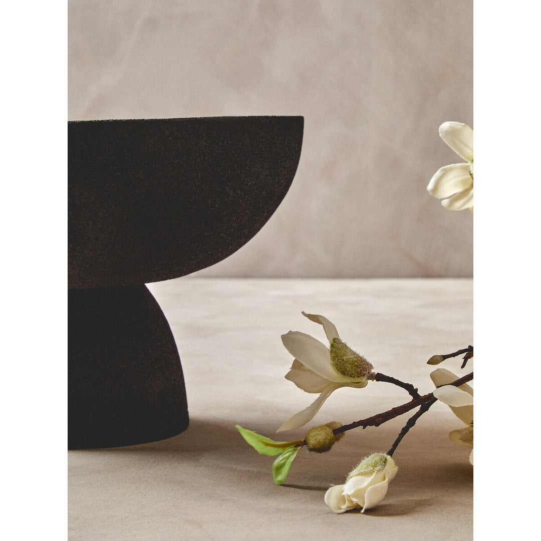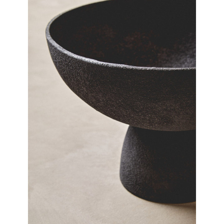This large aluminum bowl has a sleek textured black finish that effortlessly complements any decor. The bowl's pedestal base contributes to the aesthetic appeal and adds stability.