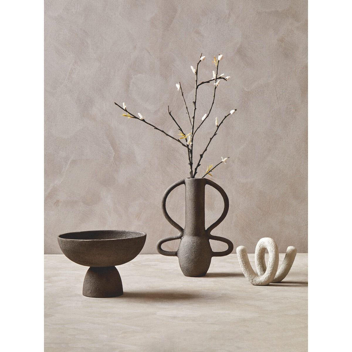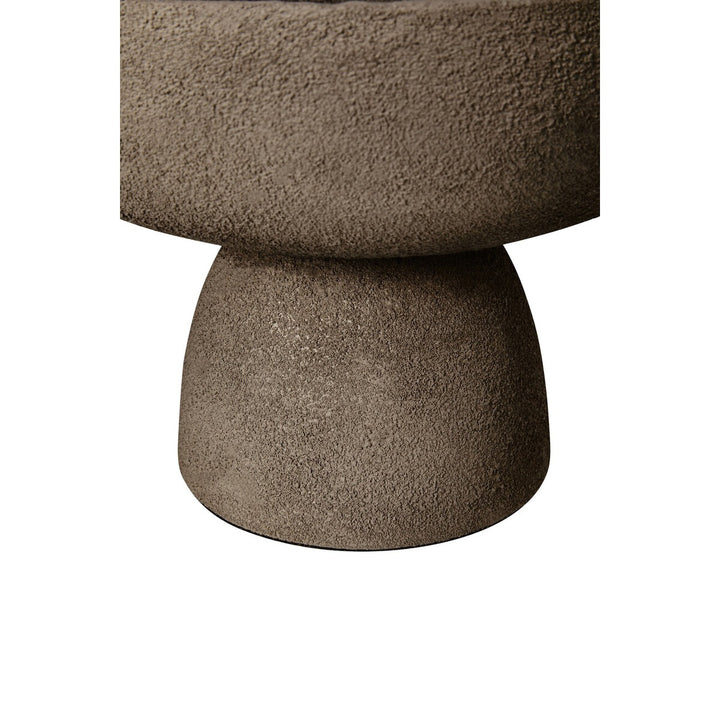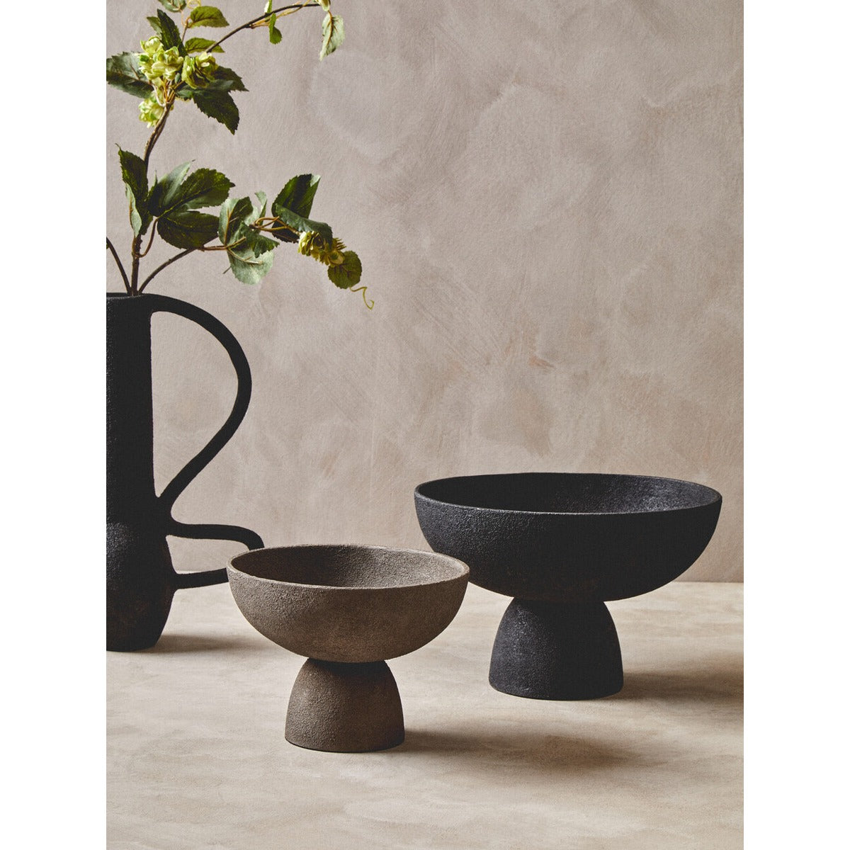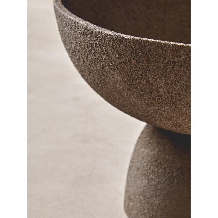 This small aluminum bowl has a sleek textured grey finish that effortlessly complements any decor. The bowl's pedestal base contributes to the aesthetic appeal and adds stability.