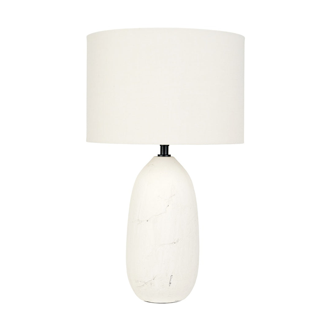 Our vintage texture ceramic table lamp in a white colour palette is finished with a natural cracked effect, giving the tall dome-shaped base a tactile, aged effect. The beautiful lamp base that will suit any Coastal or Scandi-styled interior perfectly, is finished with an off-white faux cotton lined lampshade.