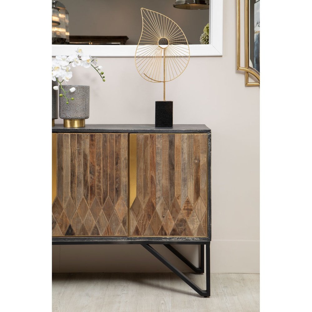 Add some shimmer and sparkle to your home with this beautiful Paisley sculpture from Olivia's. This stylish sculpture features a silhouette of a gold leaf with a circular cut out in the centre from which gold bars radiate outwards.