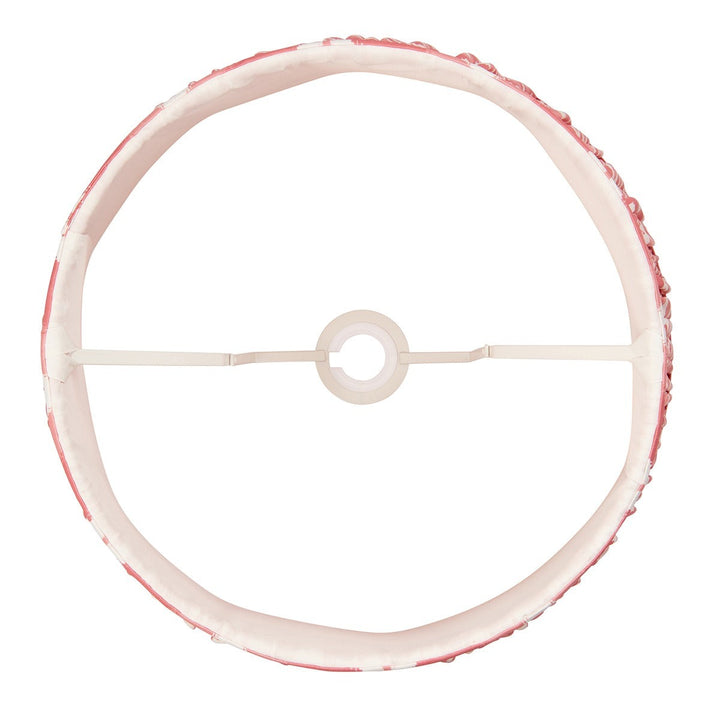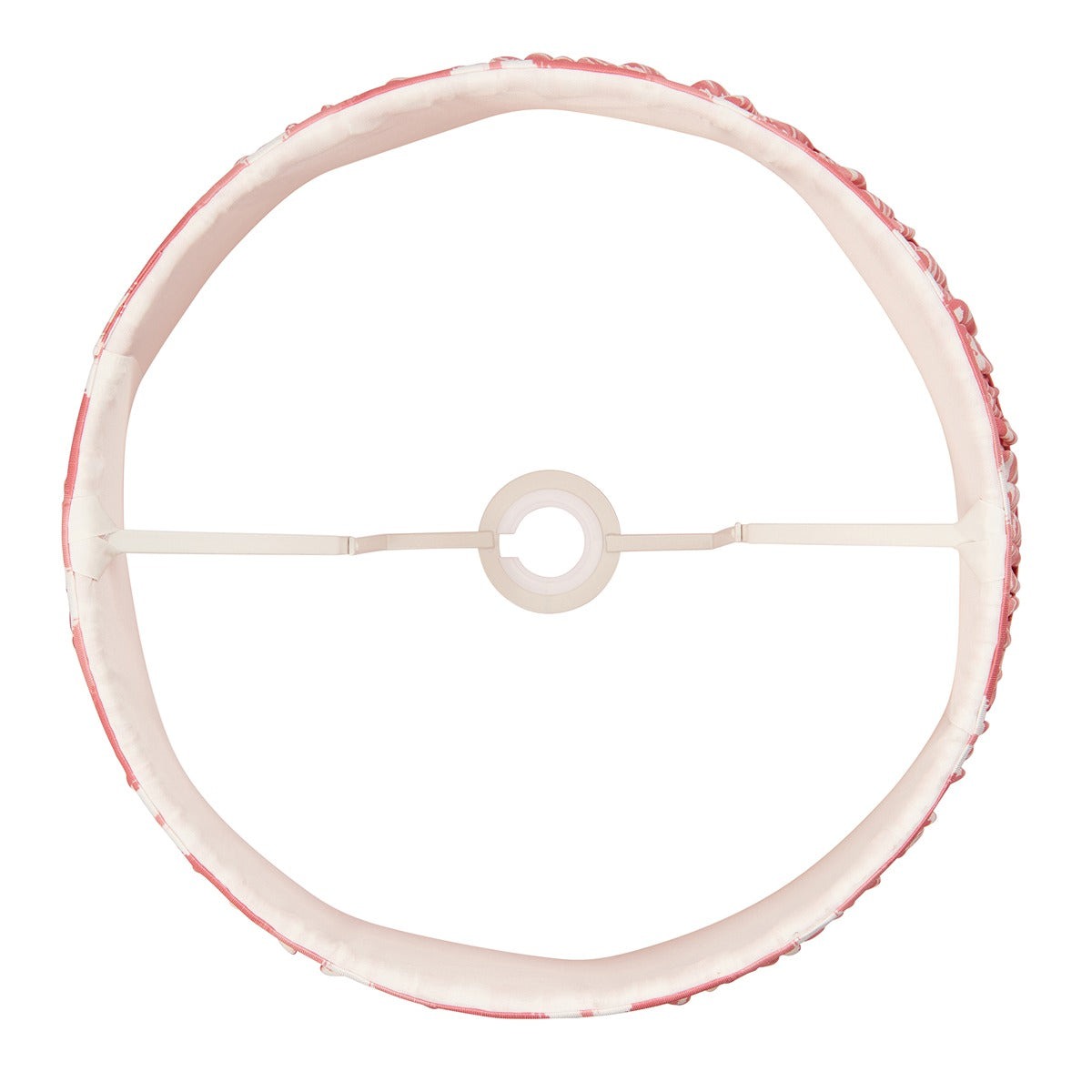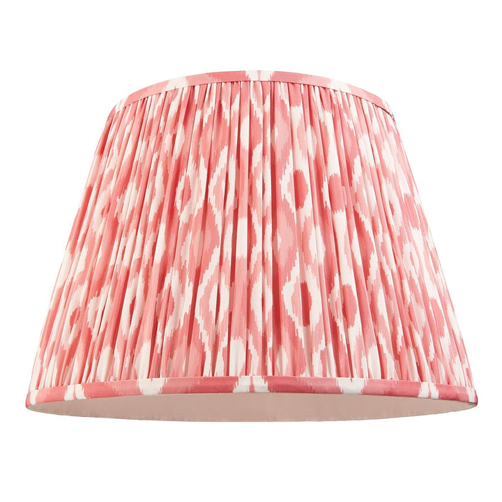 40cm tapered shade with reversible white gimbal. Unique Ikat pattern design in coral pink with taped edge detailing and plain inner lining. Perfect when paired with one of our floor lamps or cable sets.