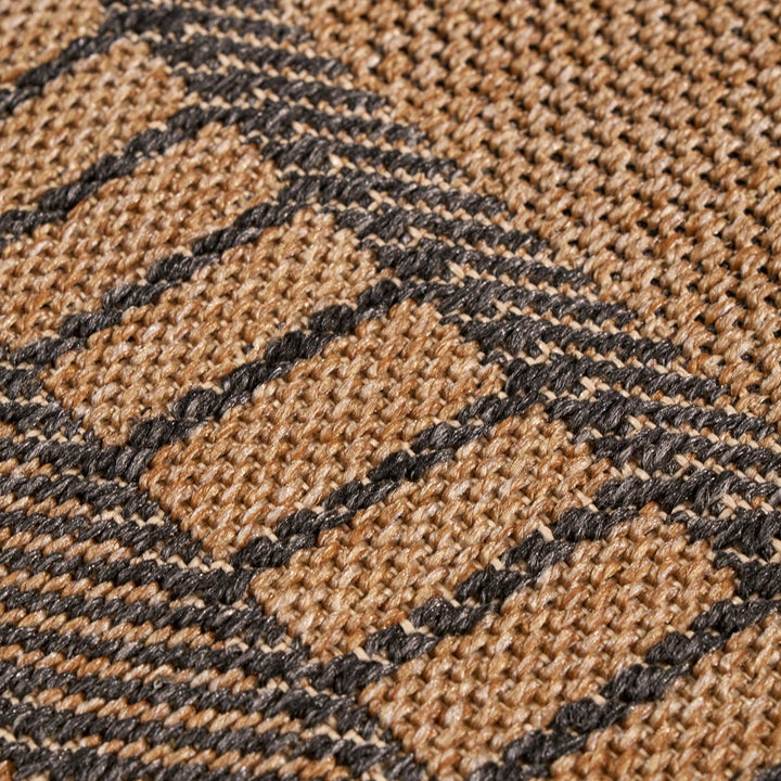 Enhance your outdoor or indoor setting with Olivia"s Indoor Outdoor Natural and Black Border Design Rug. Crafted from tightly woven Polypropylene fibers, these rugs offer durability and style. The natural sisal effect with a black border design adds a touch of sophistication to any space. Whether used in the garden or indoors, these rugs are non-toxic, mold and mildew resistant, making them ideal for busy areas. With easy maintenance and a versatile design, these rugs provide both functionality and aesthetic appeal to your living spaces.