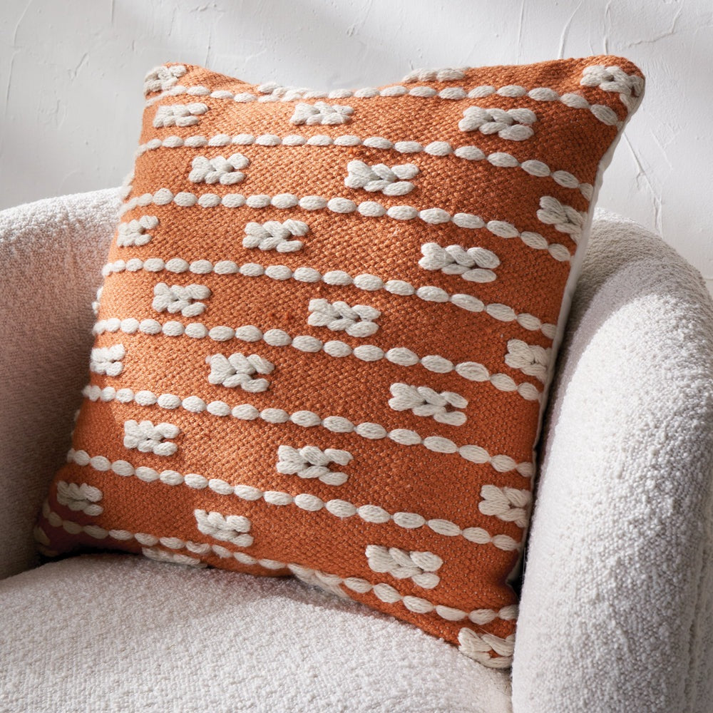 Indoor Outdoor Braid Scatter Cushion - Terracotta & White