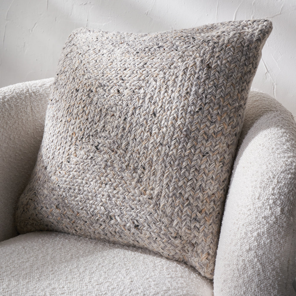 Indoor Outdoor Tweed Scatter Cushion - Warm Grey