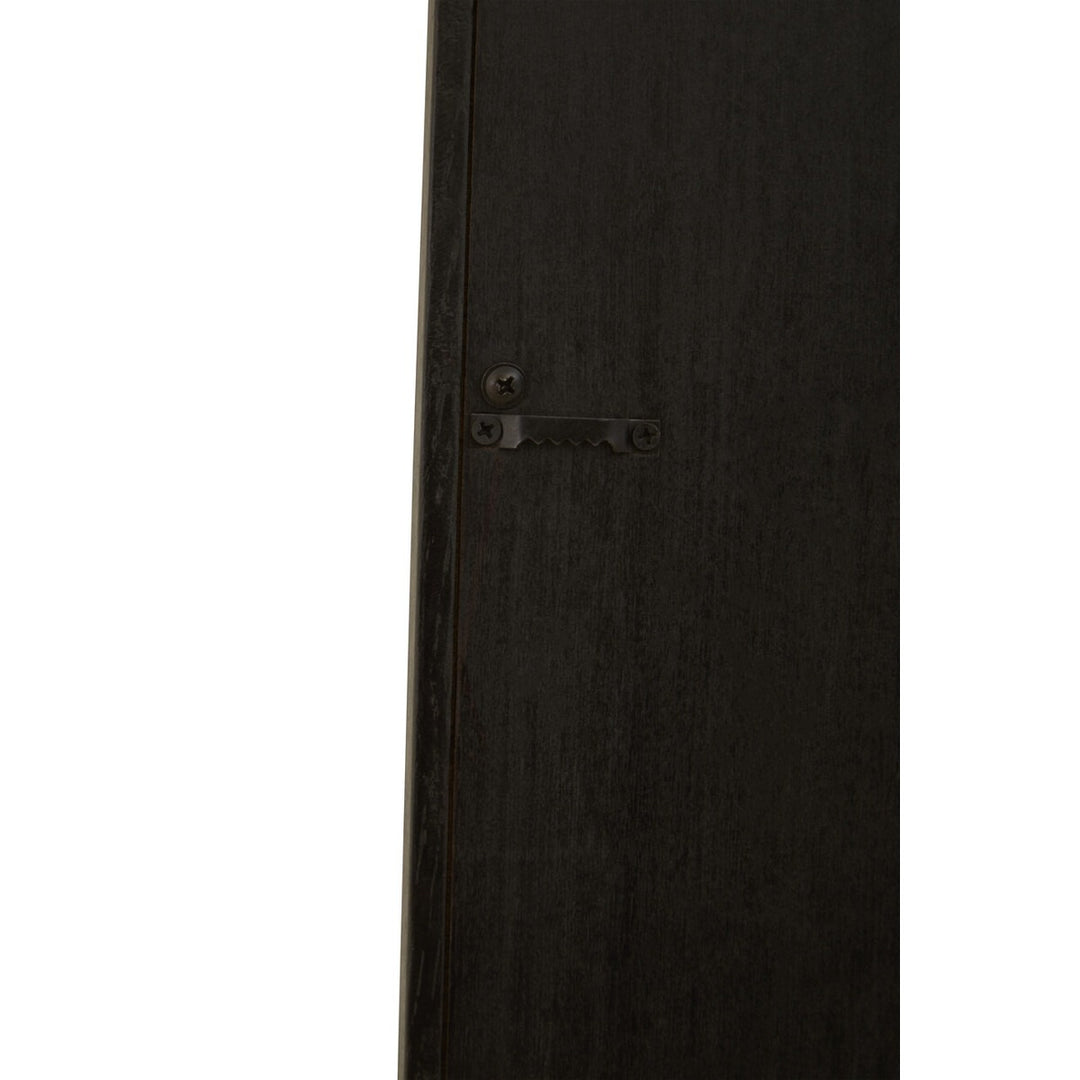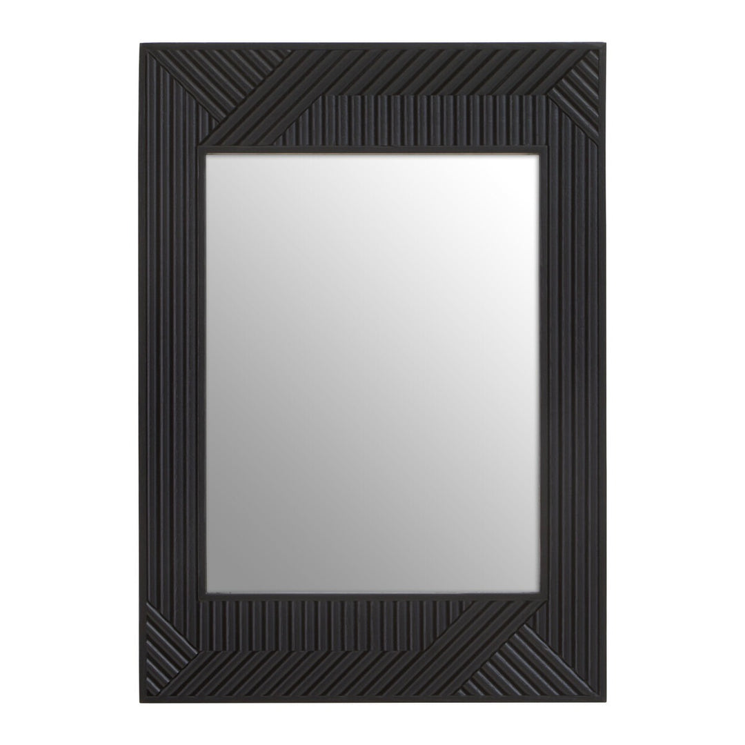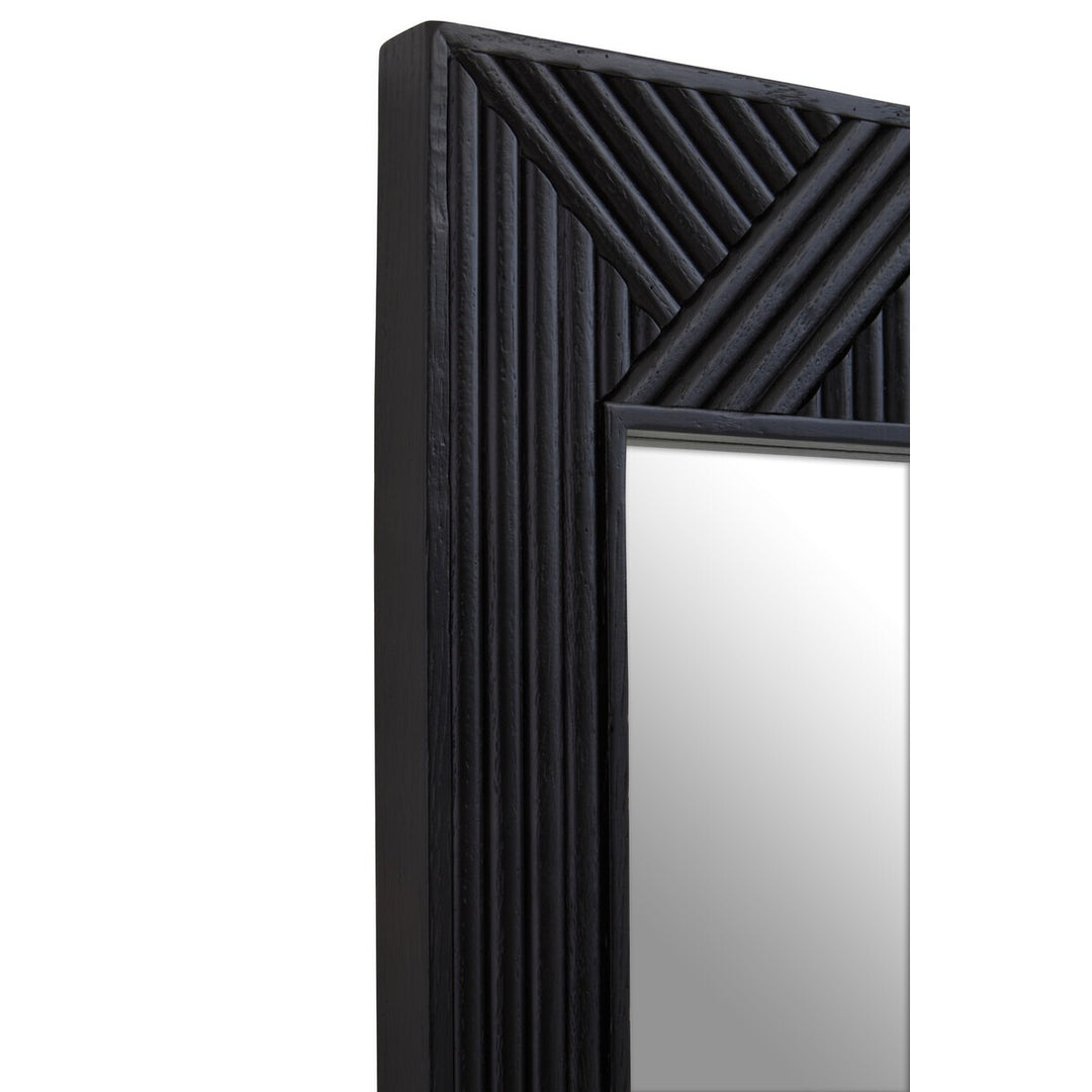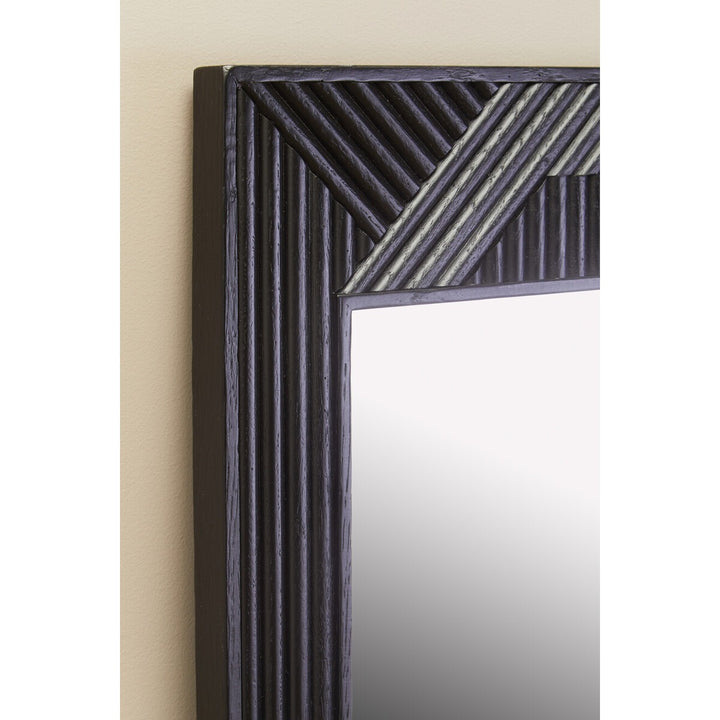 This large mirror has a black finish wooden frame accentuating a carved effect around the vertical frame. The mirror will look elegant thankas to the simple and minimalistic design.