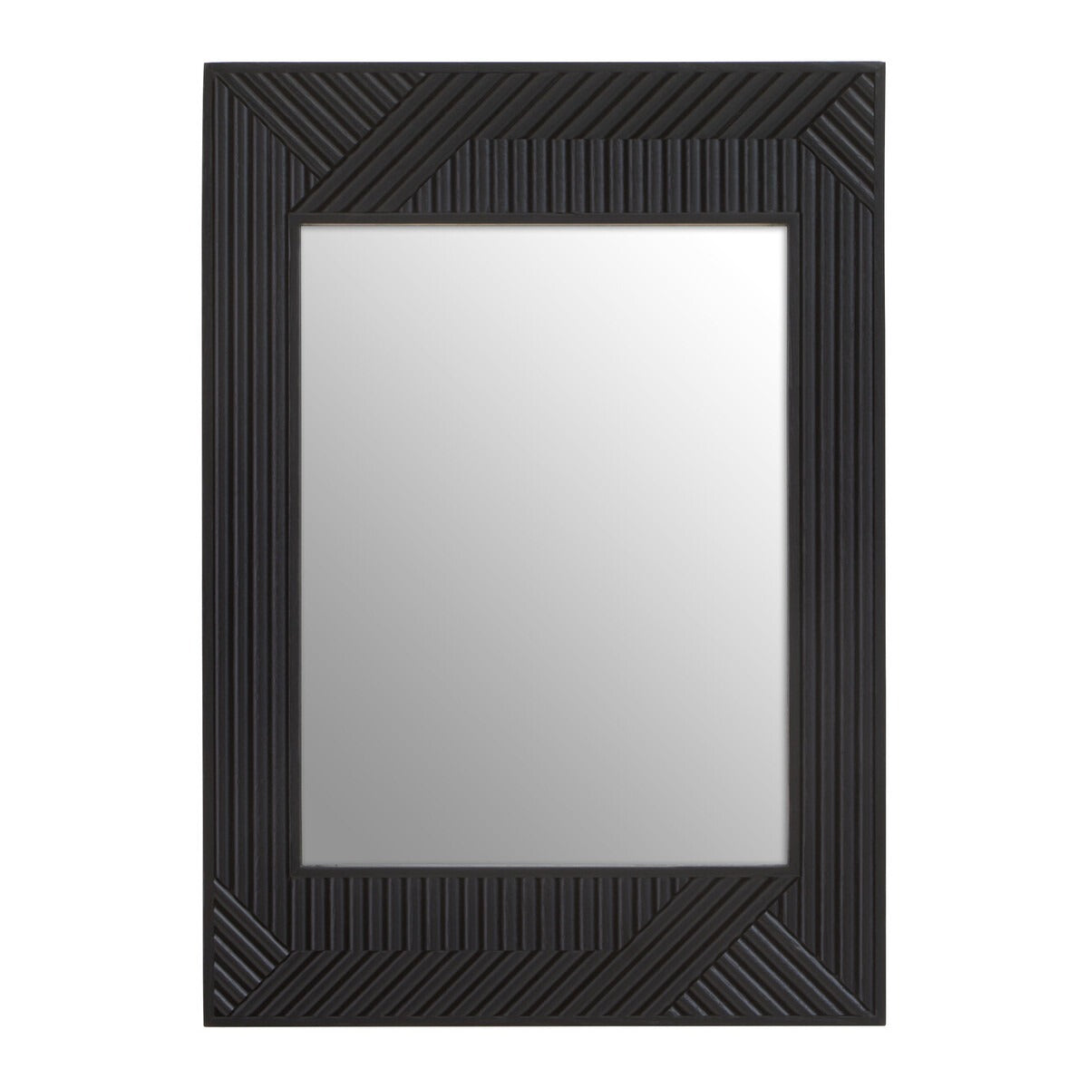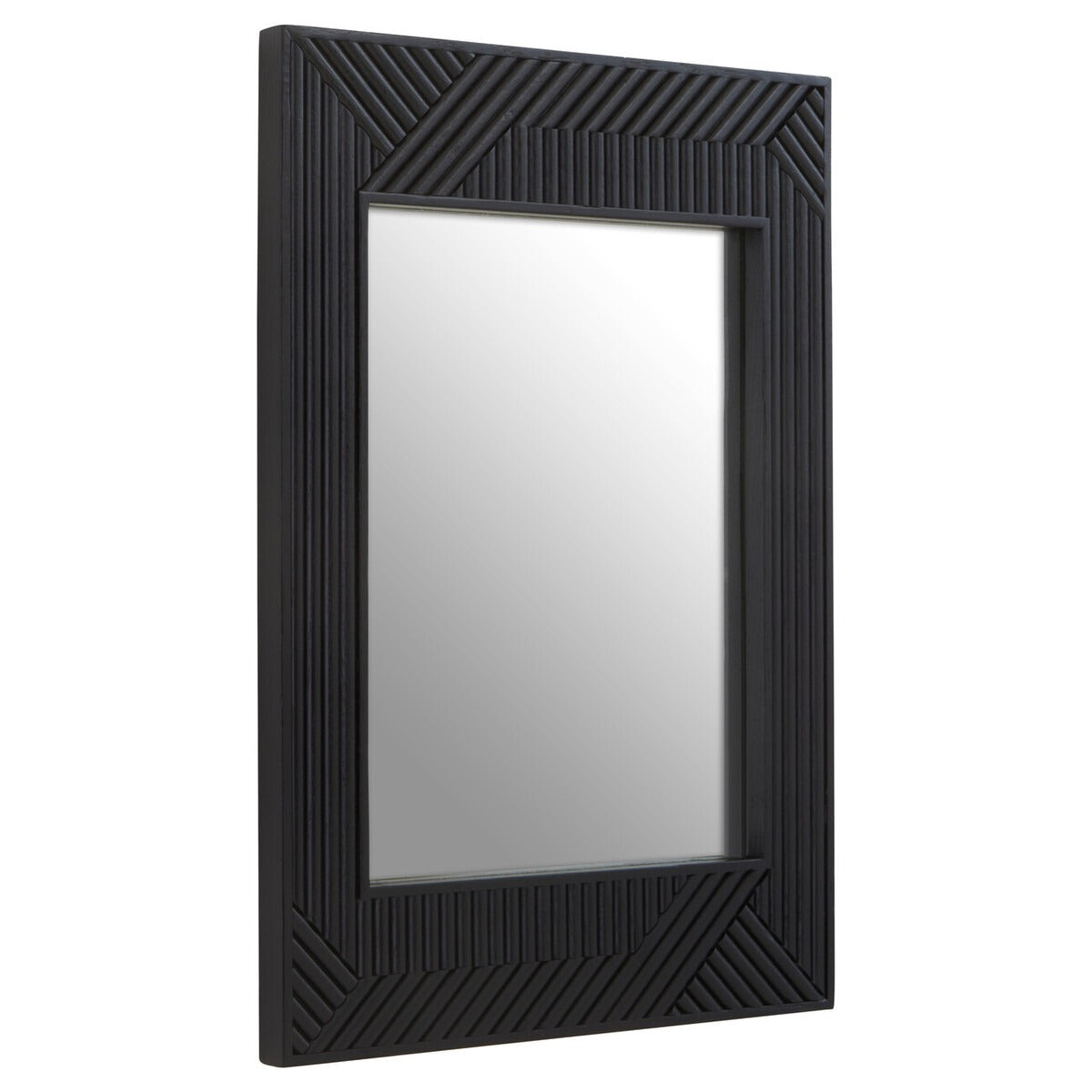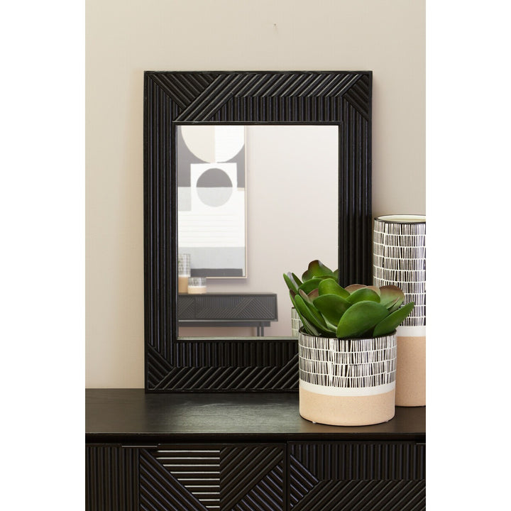 This large mirror has a black finish wooden frame accentuating a carved effect around the vertical frame. The mirror will look elegant thankas to the simple and minimalistic design.
