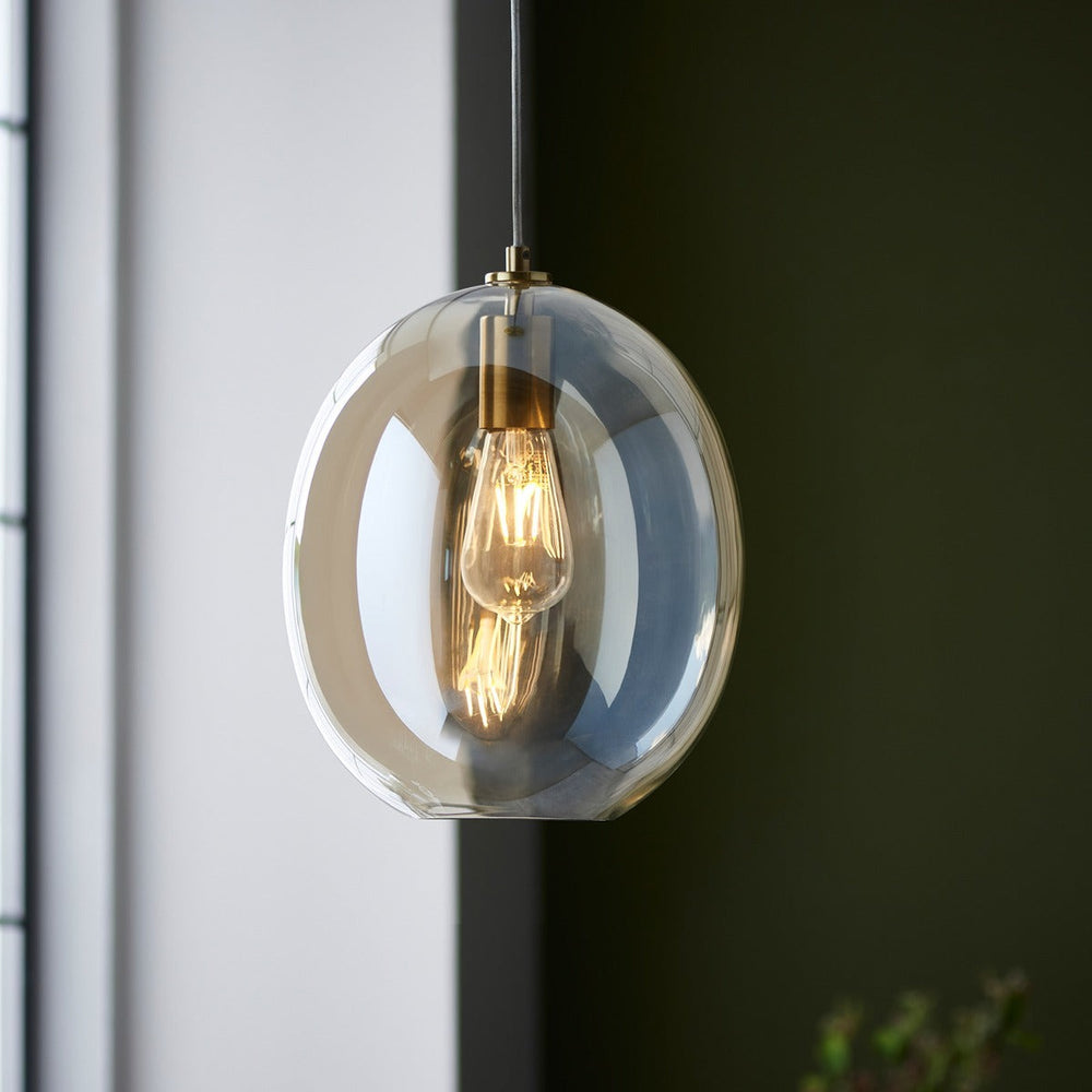 Add interesting reflections and character to any interior with this oval champagne lustre glass pendant.