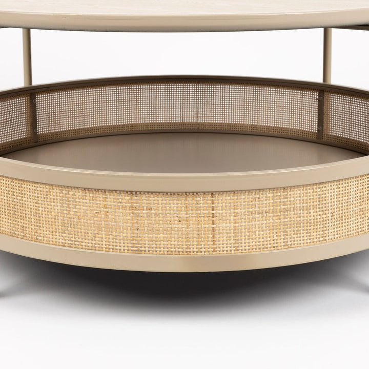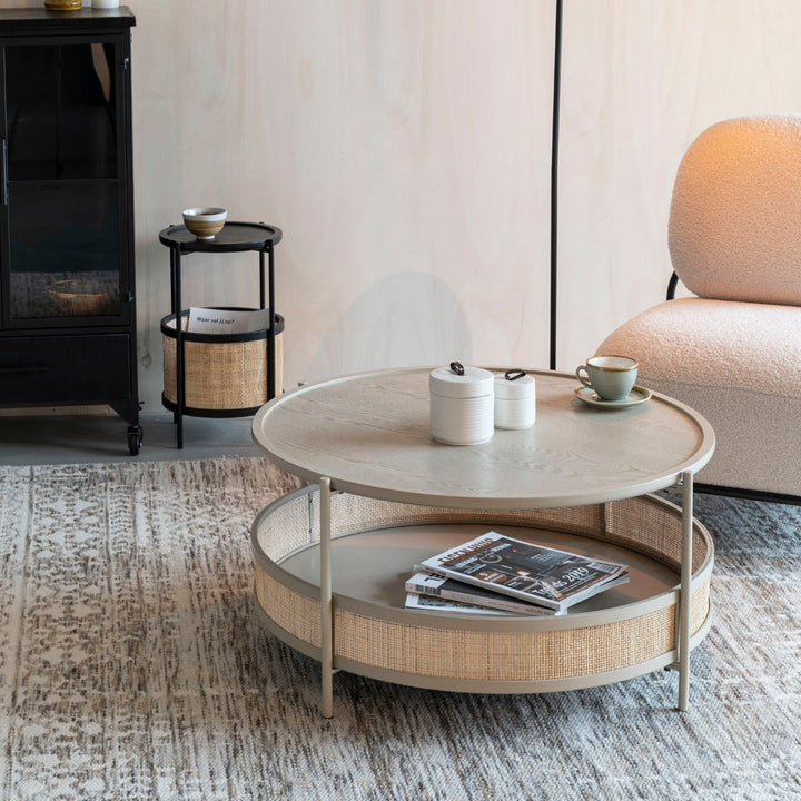 Meanwhile, the circular shape of this alluring coffee table adds a touch of the unexpected, ensuring that this piece will provide a stunning focal point in a sophisticated living area, hallway or snug. As practical as it is good looking, this table also provides useful storage space with a rattan-enclosed shelf included.