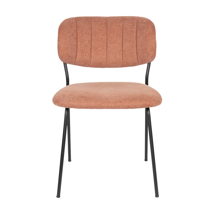 Materials: Mixed fabric upholstery (95% polyester, 5% nylon). Plywood seat and back with PU foam. Powder coated steel frame.