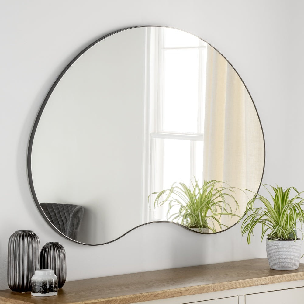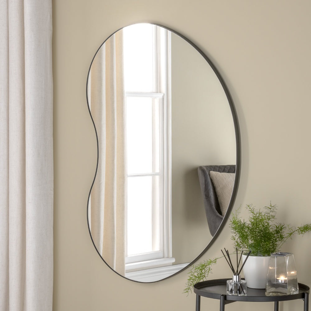 The Oman wall mirror from Olivia's offers extensive versatility thanks to its unique and quirky shape. Its eye-catching, kidney-shaped design affords for this stunning wall mirror to be displayed in a multitude of positions on your wall, depending on your personal preference.
