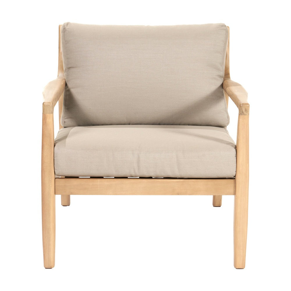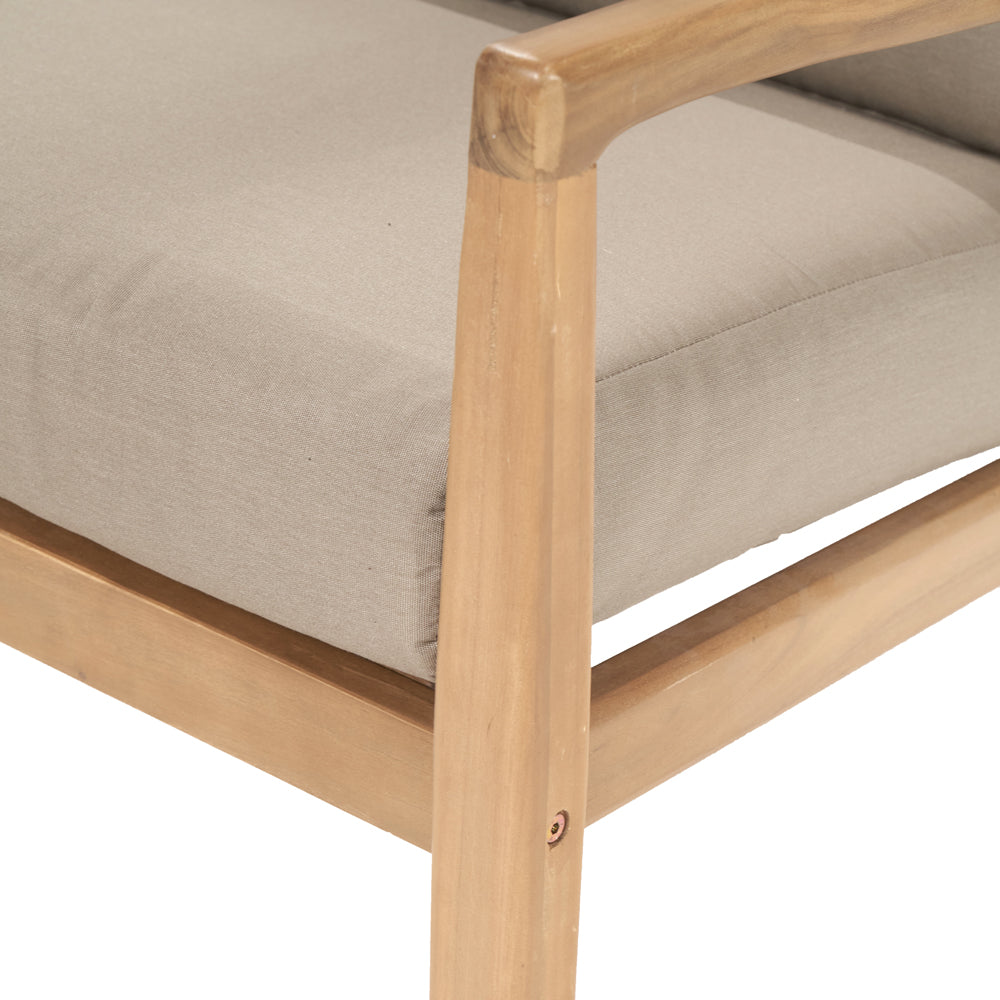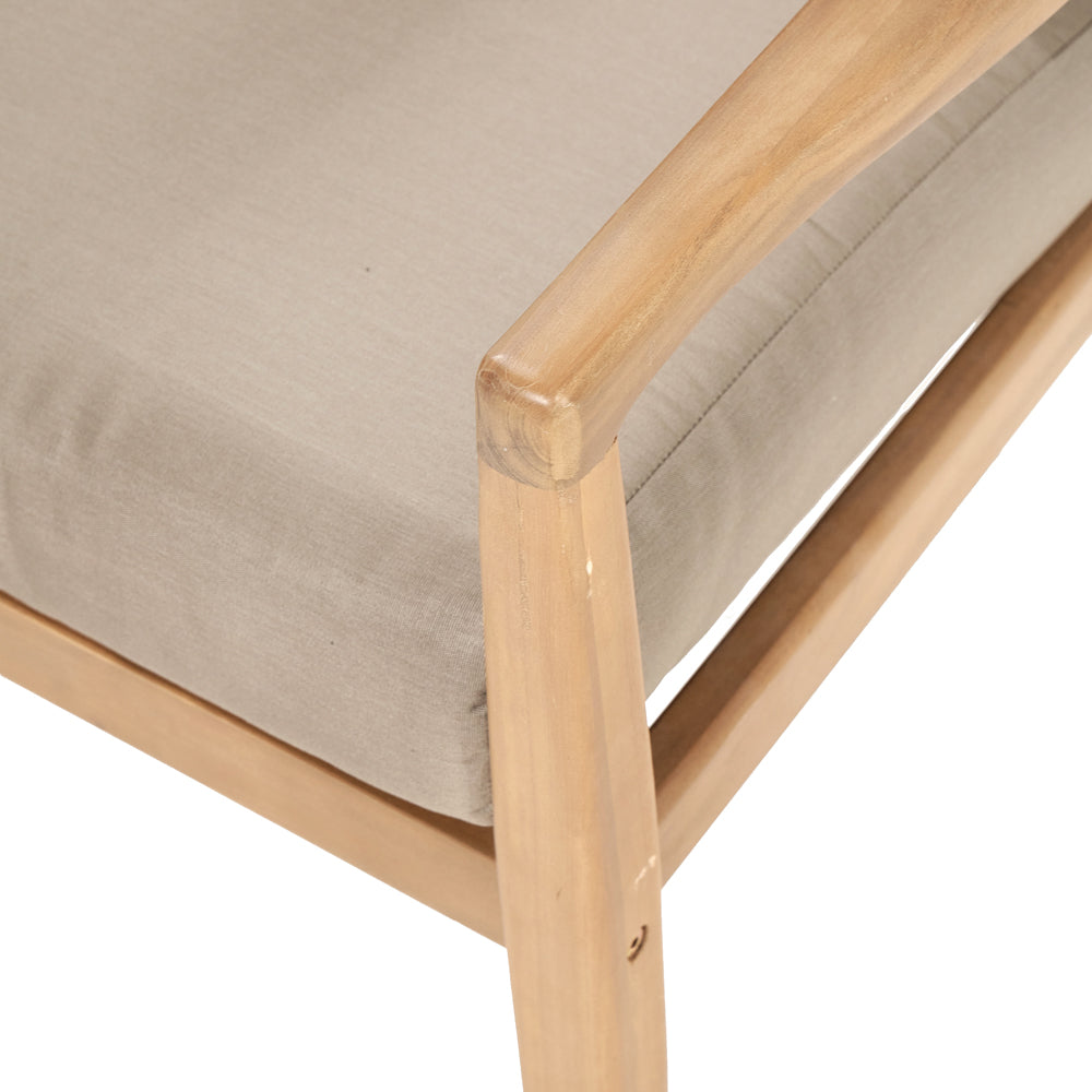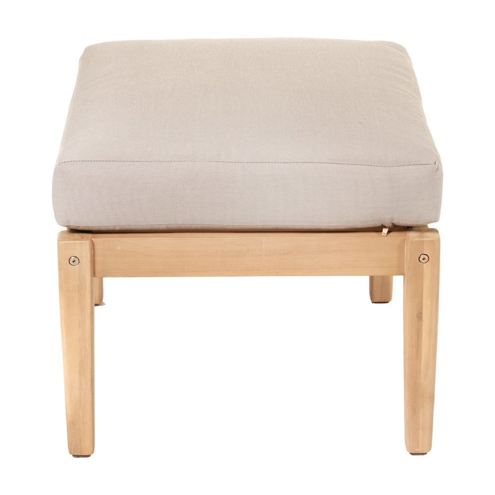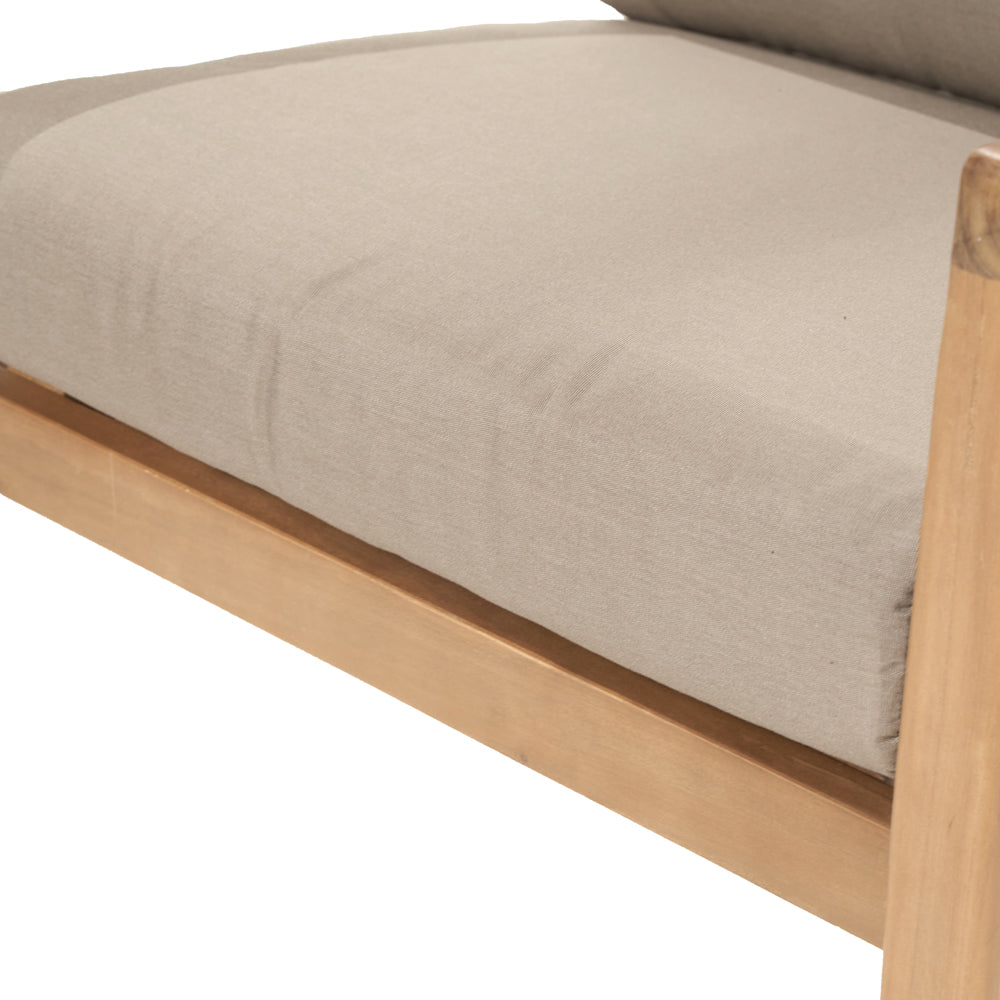 Enhance your outdoor lounging space with Olivia"s Outdoor Mauritius Light Teak Finish 5 Piece Hocker Set. Handcrafted in Vietnam, this set offers a sleek design that will give your garden a contemporary update. Featuring a Light Teak Effect Acacia Wood frame and Light Linen Effect Taupe cushions, this hocker set combines style with comfort effortlessly. The set includes 2 armchairs, 2 footstools, and a side table, providing versatility and functionality. The sleek and slimline acacia wood frame is environmentally friendly, quick-growing, and durable, ensuring long-lasting use. Each comfortable cushion is season-proof, guaranteeing the highest quality for your outdoor lounging enjoyment. Whether used as additional seating or for relaxation, the Malta Hocker Set adds sophistication and style to any outdoor space. Experience ultimate comfort and elegance with this contemporary outdoor furniture set, perfect for gatherings or quiet moments outdoors.