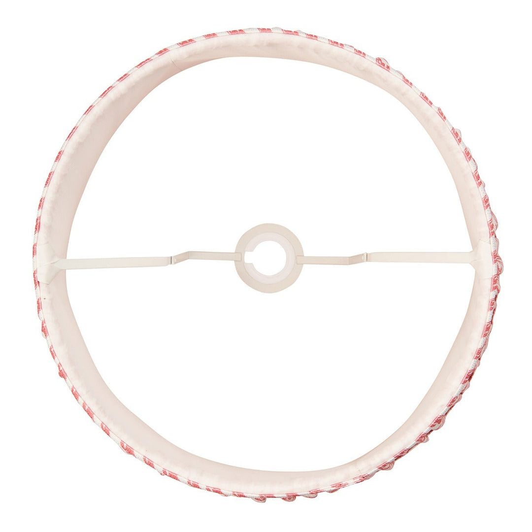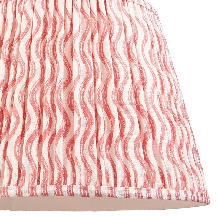 40cm tapered shade with reversible white gimbal. Ripple pattern in coral pink with taped edge detailing and plain inner lining. Perfect when paired with one of our beautifully decorative floor lamps or cable sets.