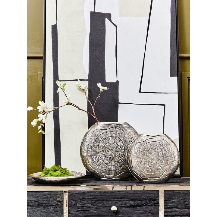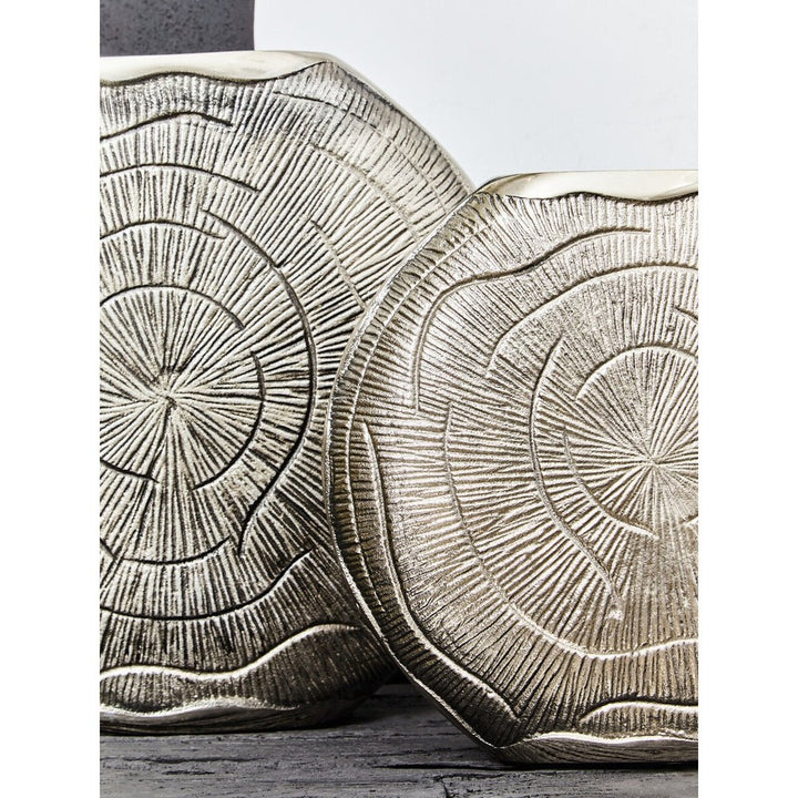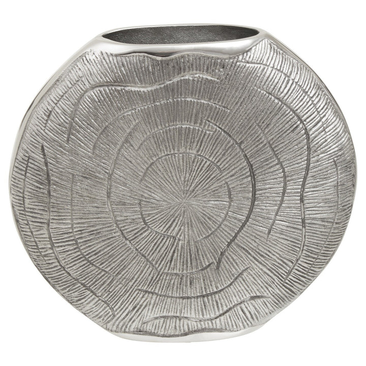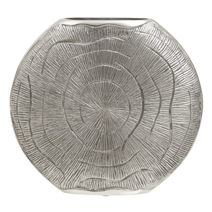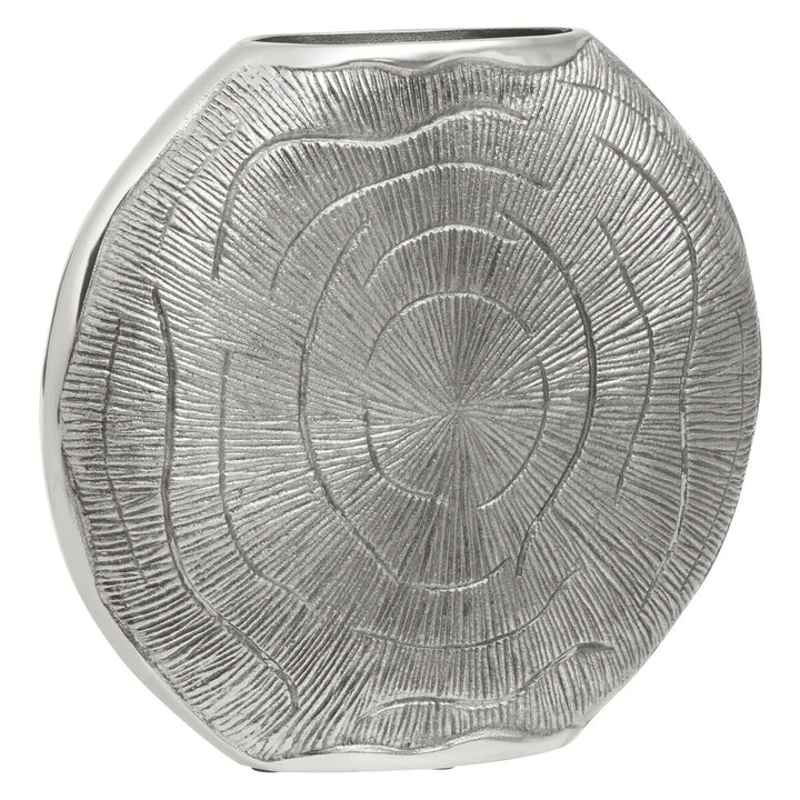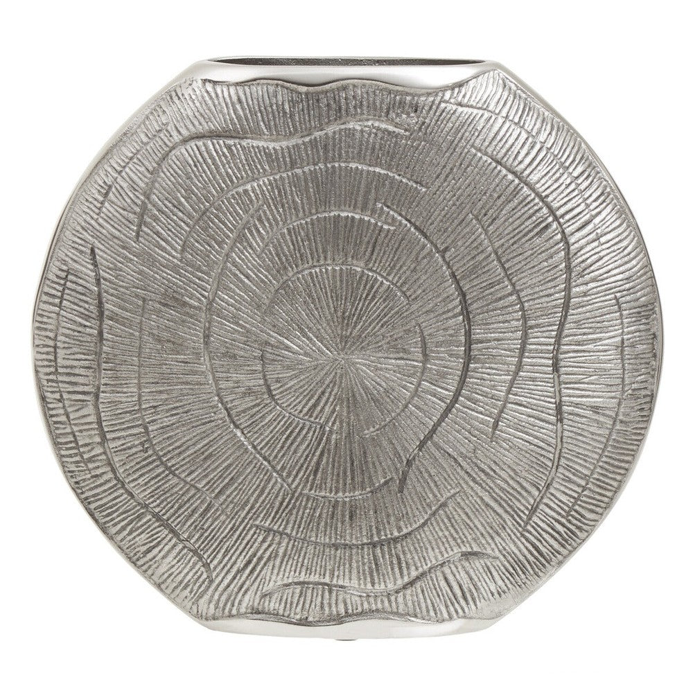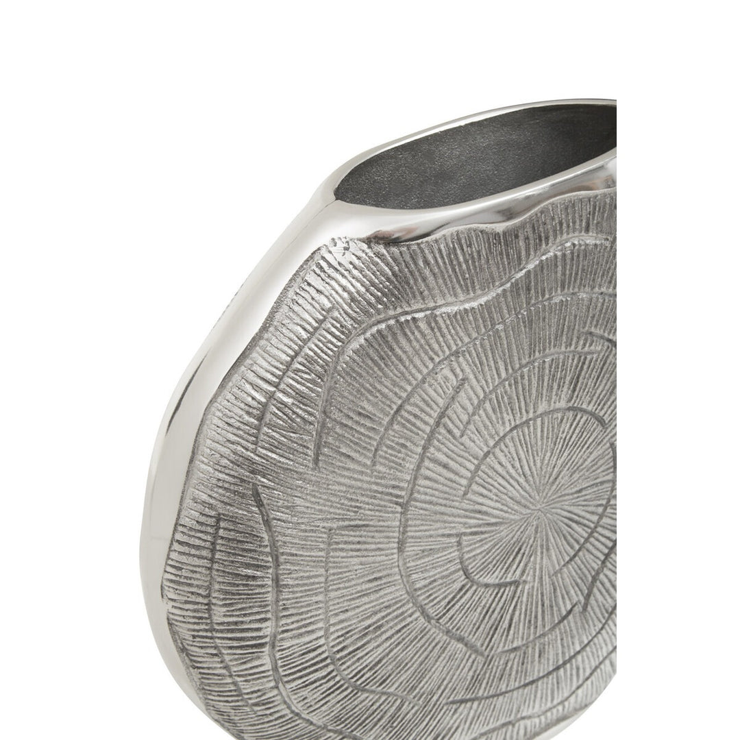 The decorative Silva Vase captures the unique shapes created by the growth rings of an Oak Tree. Handcrafted from quality aluminium in an antique silver finish, this process results in a textured appearance which adds character to the design.