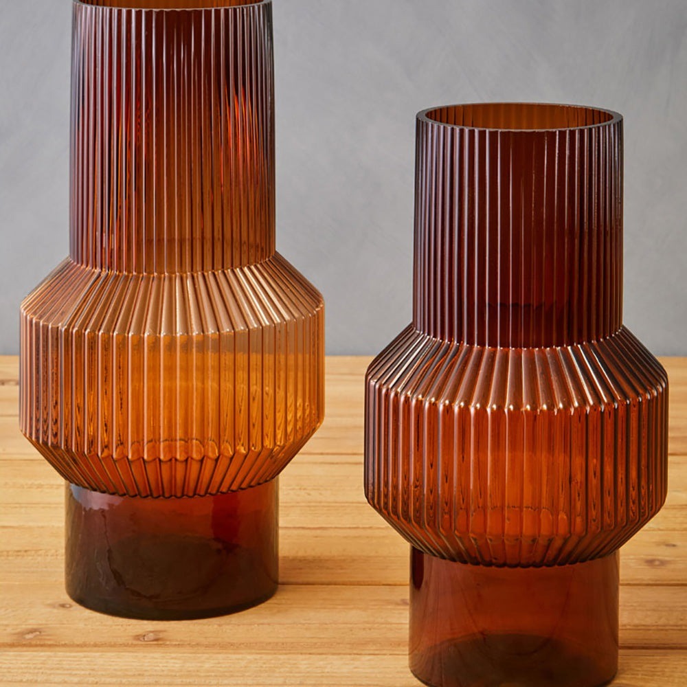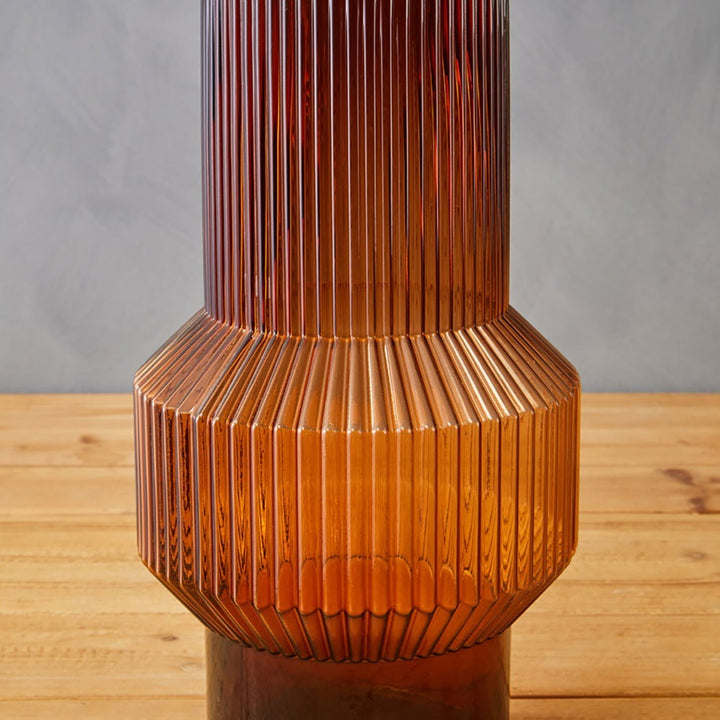The beautifully crafted ridges of the glass make this piece truly unique; it is guaranteed to be a conversation piece around the dinner table. The colourful brown hues within the glass are perfect for adding colour to any room.