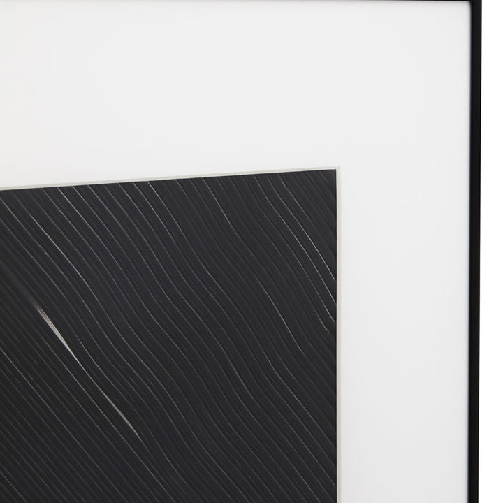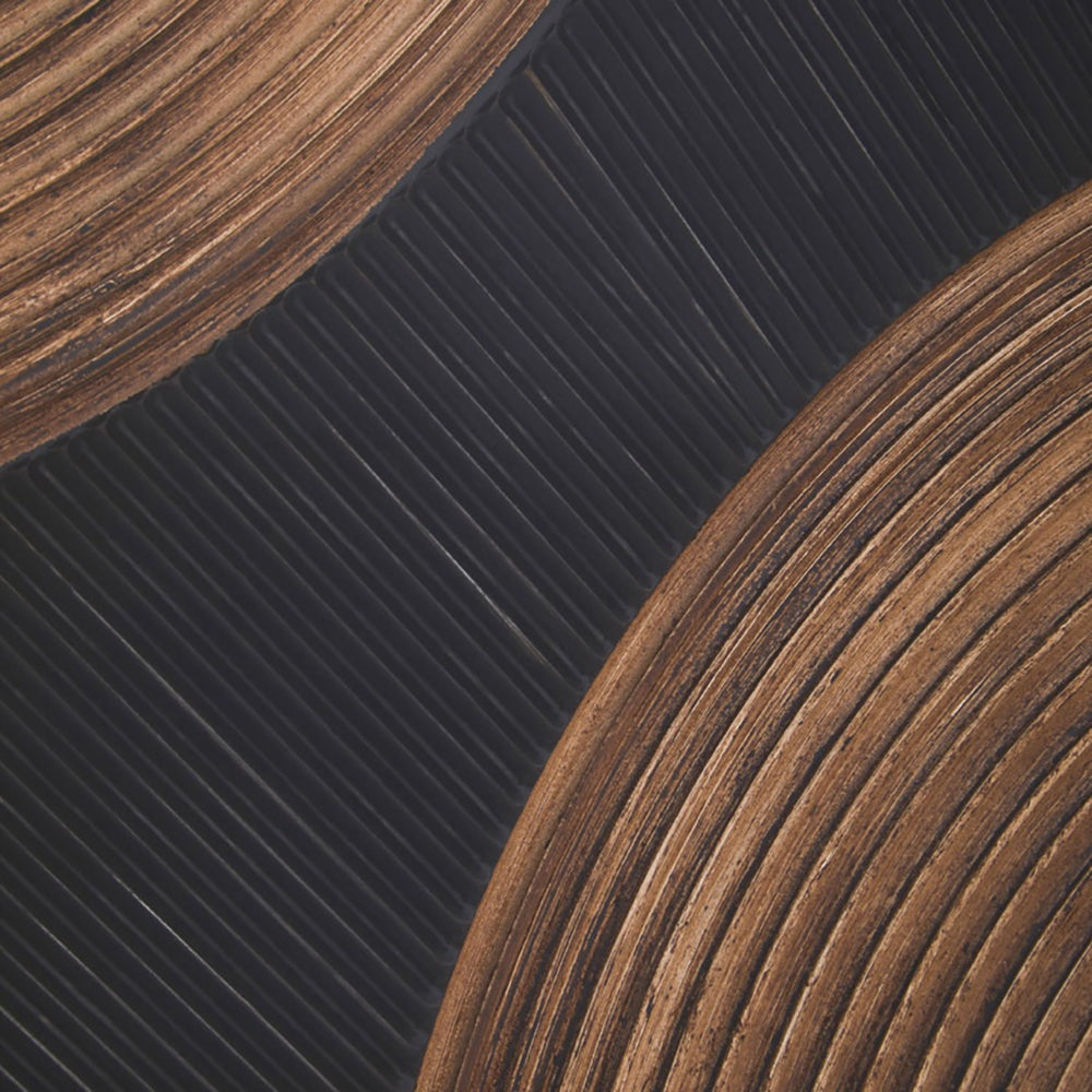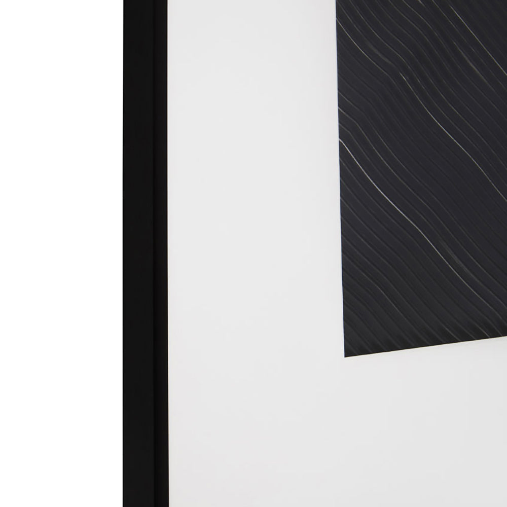 Part of the Olivia’s Soft Industrial collection, the Neavah wall art in black and brown delivers on both style and impact. Set inside a slim black 80cm square wall-hung frame, the eye is instantly drawn to the image at the centre of the frame which consists of two partial concentric circles, separated by a textured black surface which creates the impression of movement.