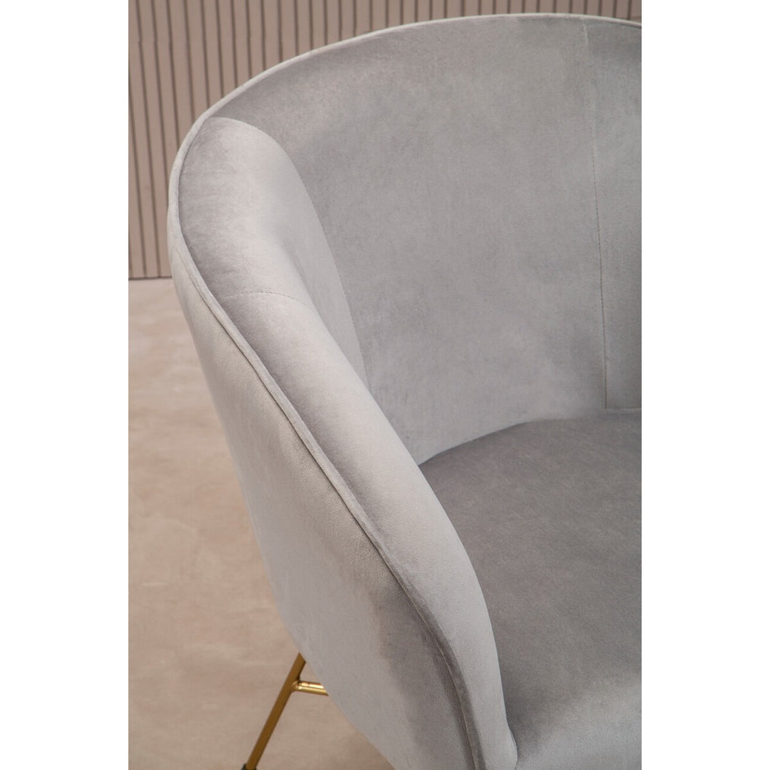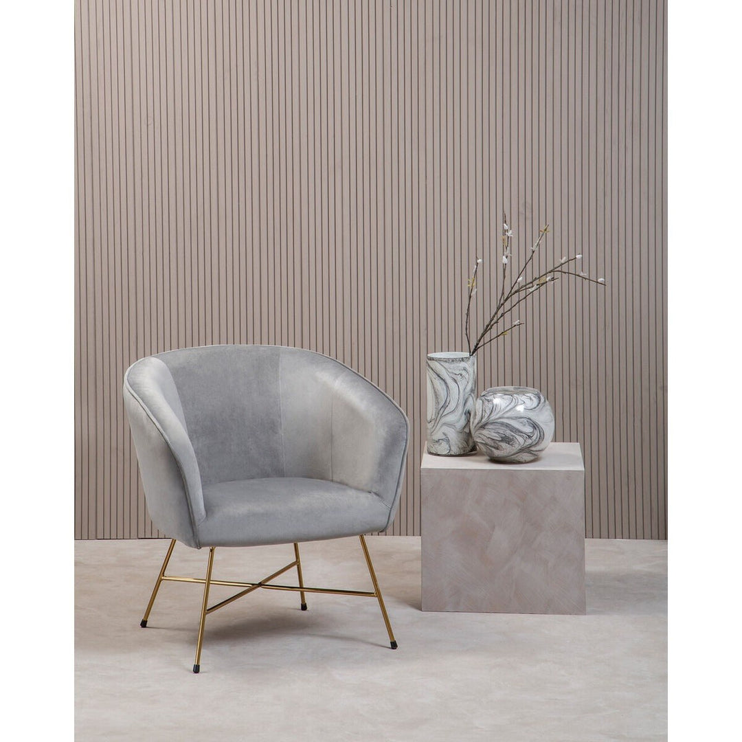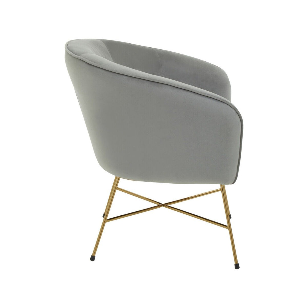 The Stockholm chair in grey velvet with ergonomic armrests and foam padded seat of this chair provides comfort, and the gold finish angular metal base adds stability to the frame. This chair will complement any living space in your home.
