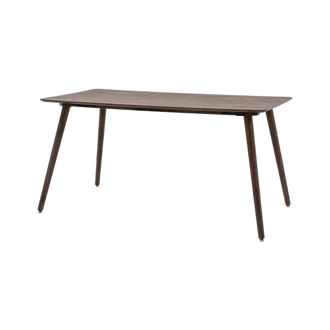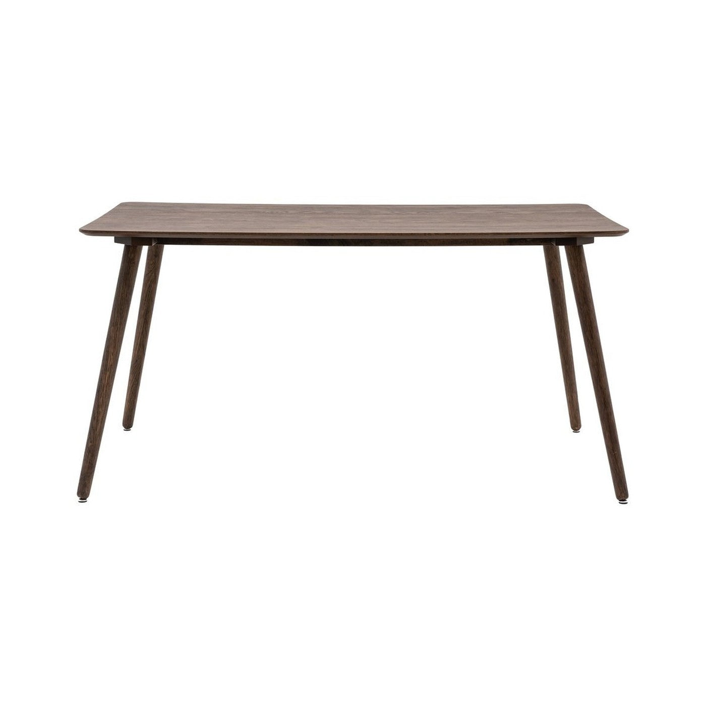 Offering retro style with a contemporary touch, this beautiful dining table features gently rounded corners which pair perfectly with the elegant legs. It is crafted from oak veneers and rubberwood with a smoked oak finish. The table is also available in a natural finish, and matching pieces are available.