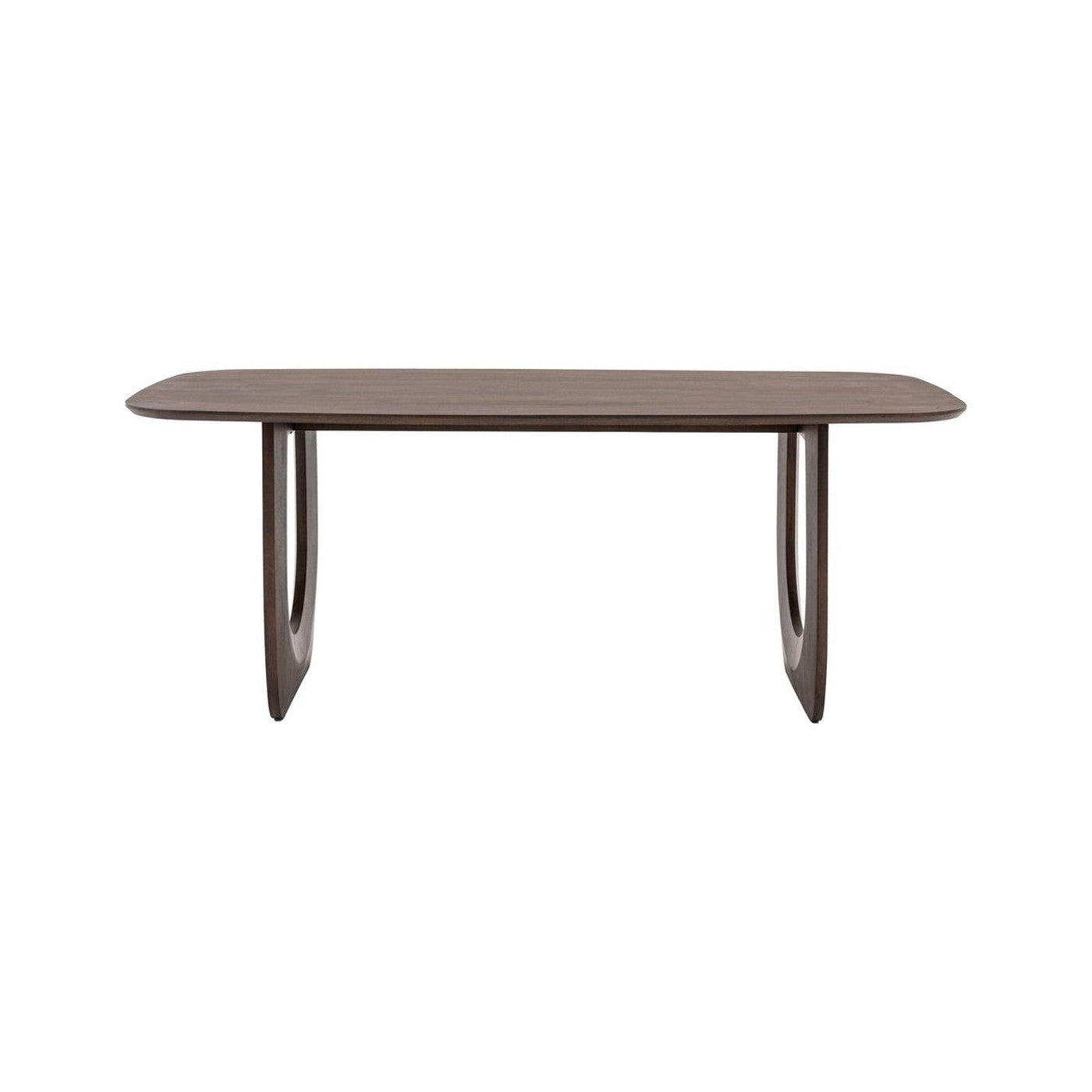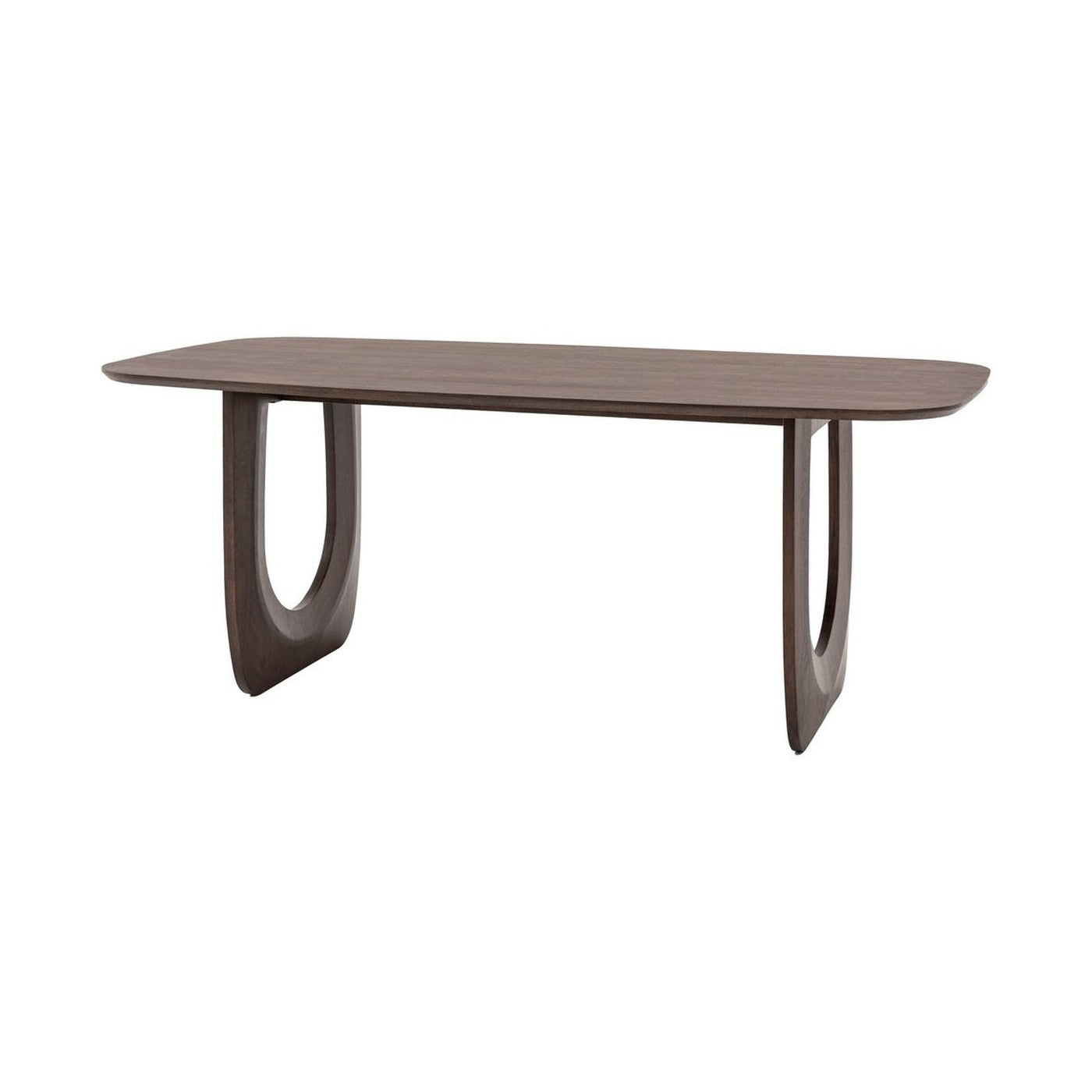With bold retro inspired shapes, this table will bring a little 70s cool to your dining room. Made from Mango wood stained to a dark tone highlighting the rich grains it’s the striking angled U shaped carved legs of this table that really grab your attention. Seats 4 - 6. Coordinating dining bench and further pieces also available.