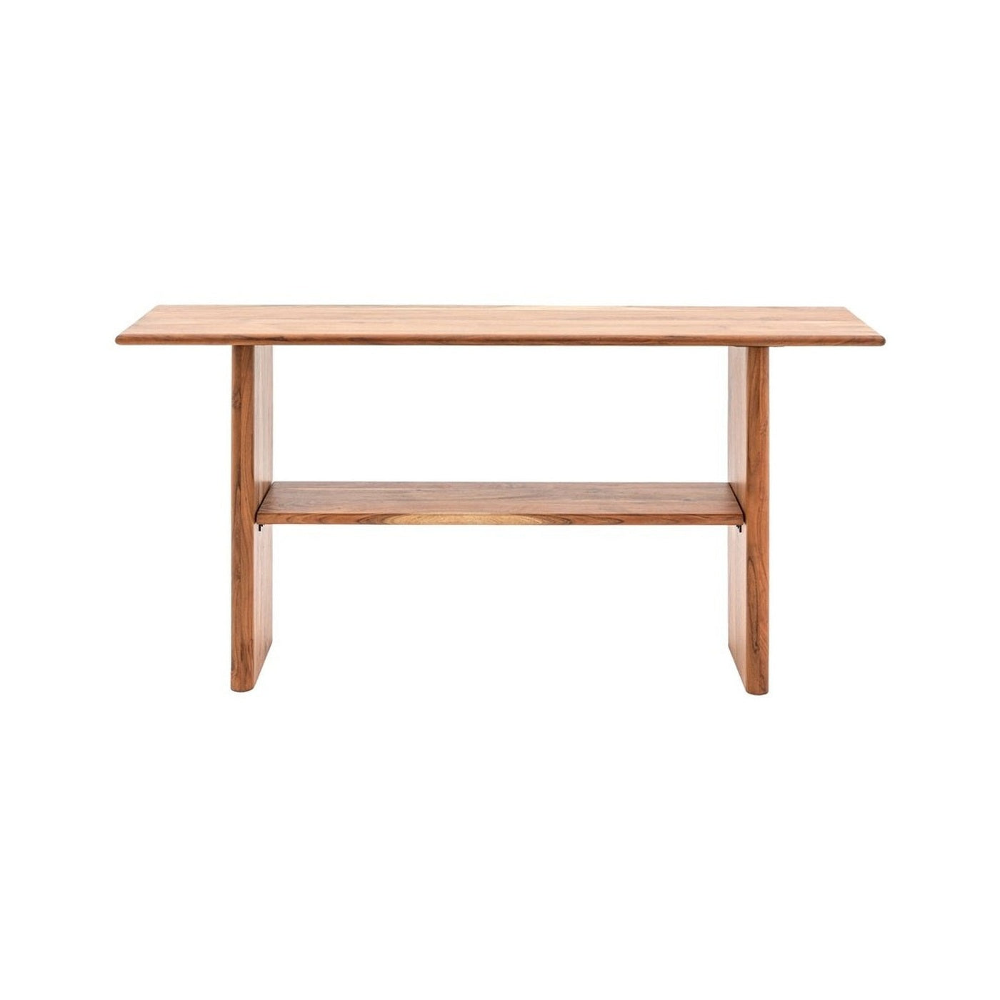 The simple design of this console table lets the richly grained Acacia wood speak for itself, with a wide top and legs showing off the beautiful wood. An additional lower shelf for extra storage makes this Console table a practical and stylish addition to any room. Coordinating further furniture pieces also available.