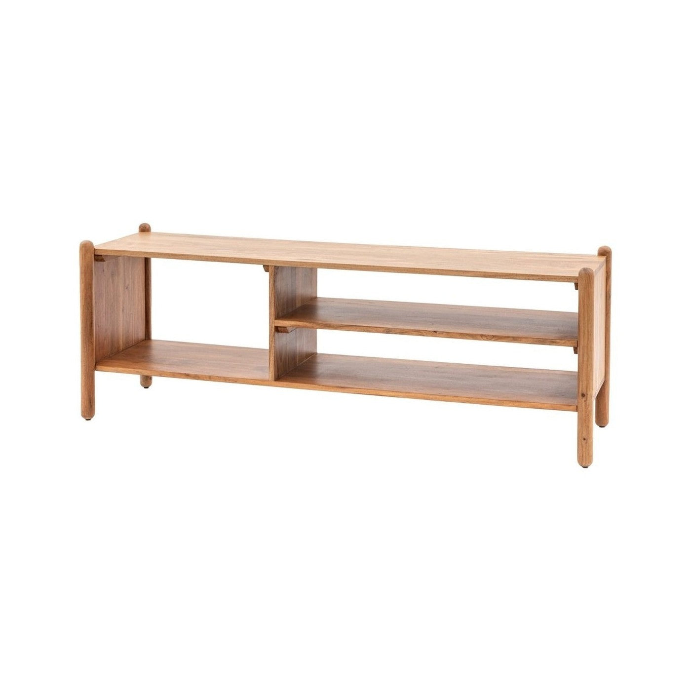 With a retro design influence and modern twist, this media unit will add a little style to your media set up. Made with rich Acacia wood the split shelf layout offers plenty of space for all of your electronics without sacrificing style. Coordinating pieces also available.