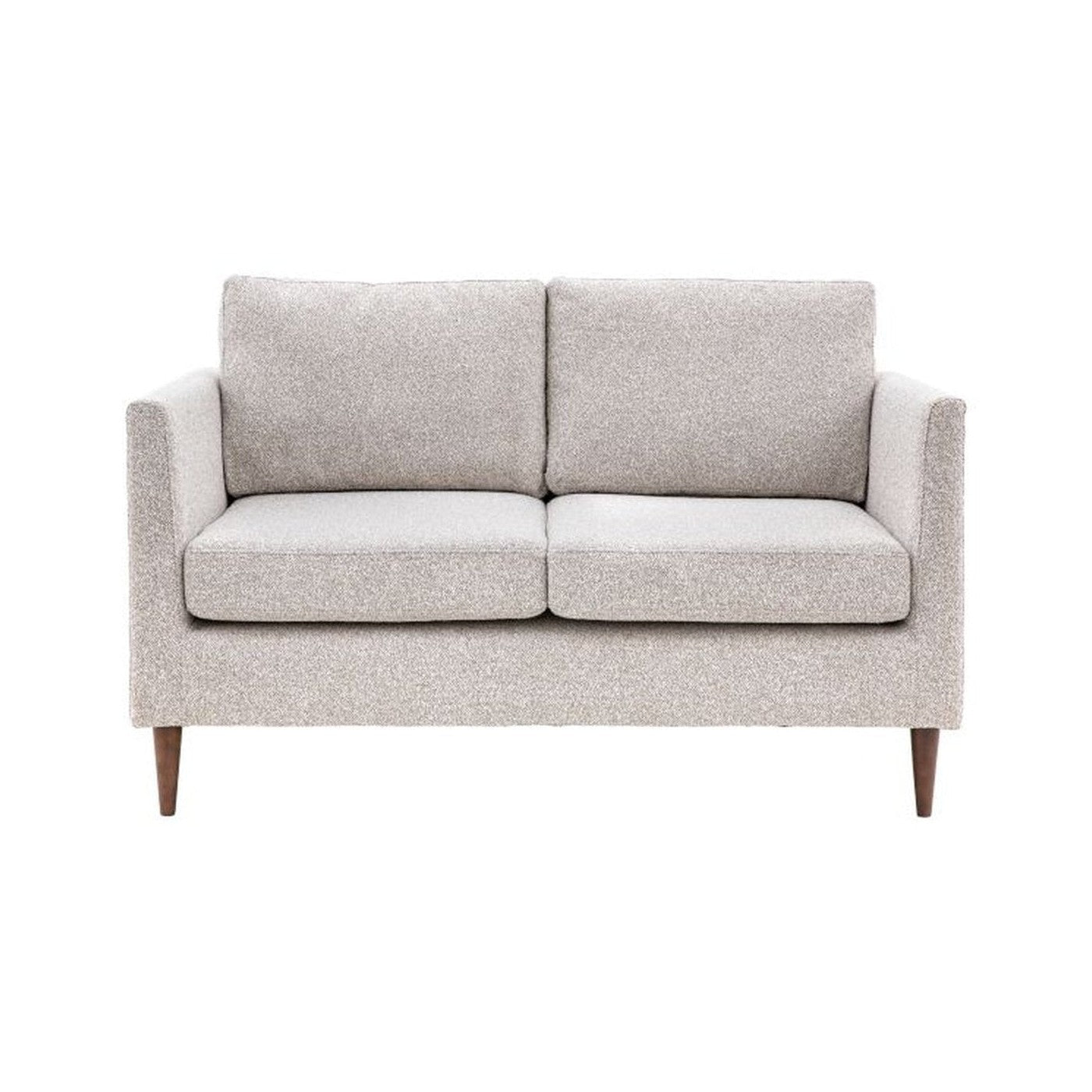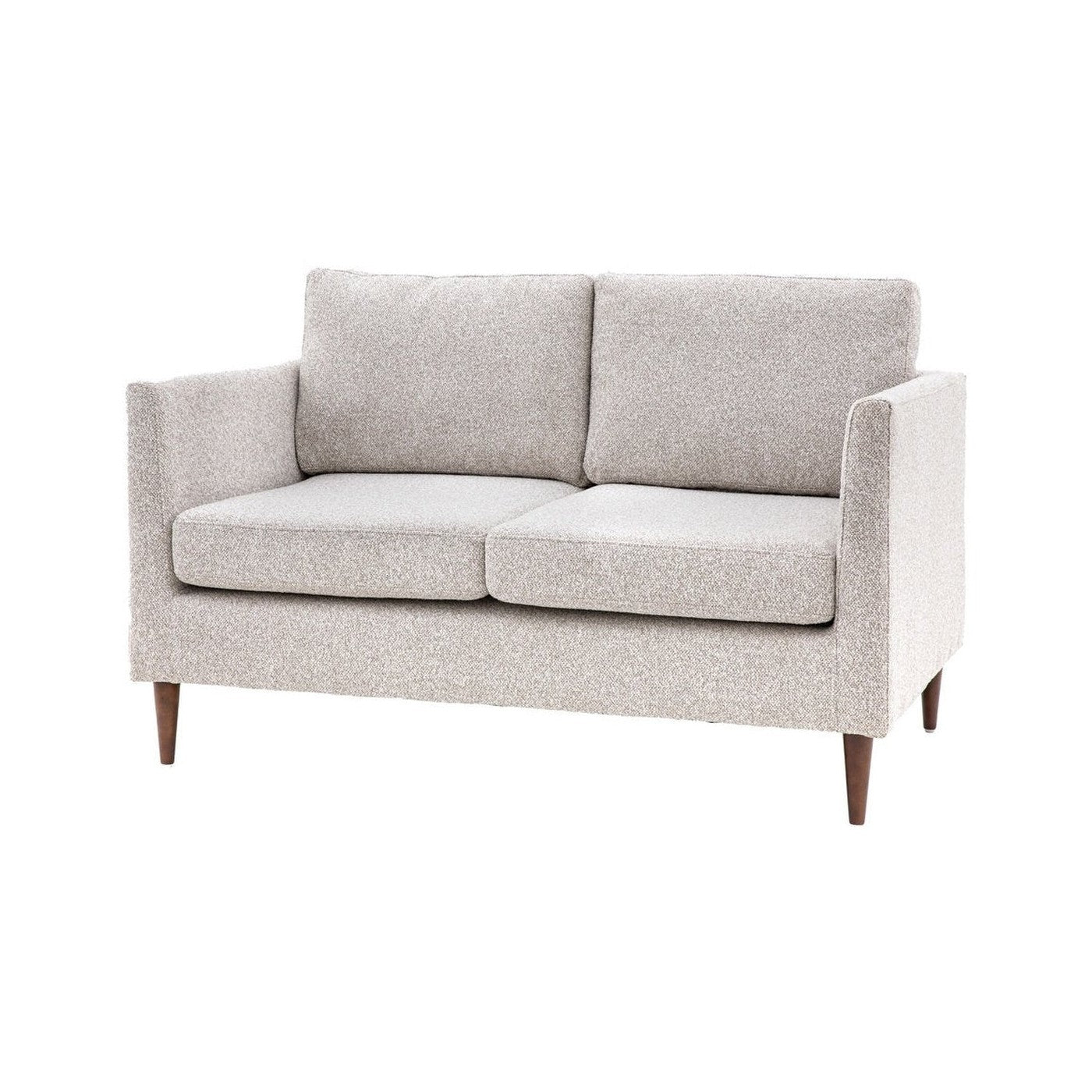 This contemporary 2-seater sofa offers a simple stylish design which would suit a wide range of interiors. Upholstered in a beautiful soft natural fabric with deep seat and back cushions for comfort, the turned wooden legs echo the shape of the gently tapered arms in a lovely design detail. Matching armchair and 3-seater sofa are available to give a coordinated look to a room.