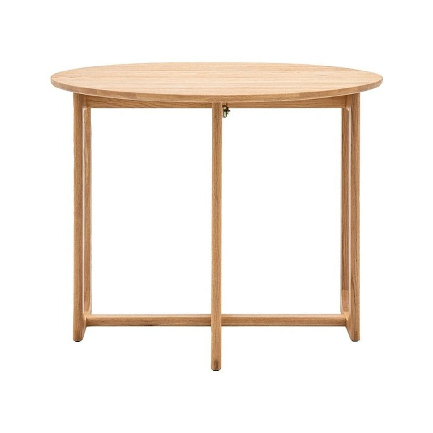 Crafted from the finest oak and structural oak veneers where practical, this stunning folding dining table pairs perfectly with the matching chairs. The table, which folds for added convenience, offers elegant design, with its simple round top and beautifully shaped underframe. The wood has a lovely natural finish. The table is also available in a smoked oak finish, and matching pieces are available.