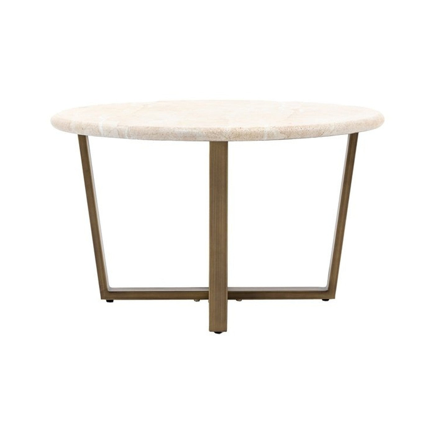 Add a touch of sophisticated elegance to a room with this lovely coffee table. The top features the most amazing travertine faux finish which is created with the latest state of the art technology to give the look and feel of the real thing but without the weight and technical difficulties. The faux travertine pairs beautifully with the metal base which has a classy bronzed brass finish, to give an understated luxury style, perfect for any classic modern interior. Matching items also available.