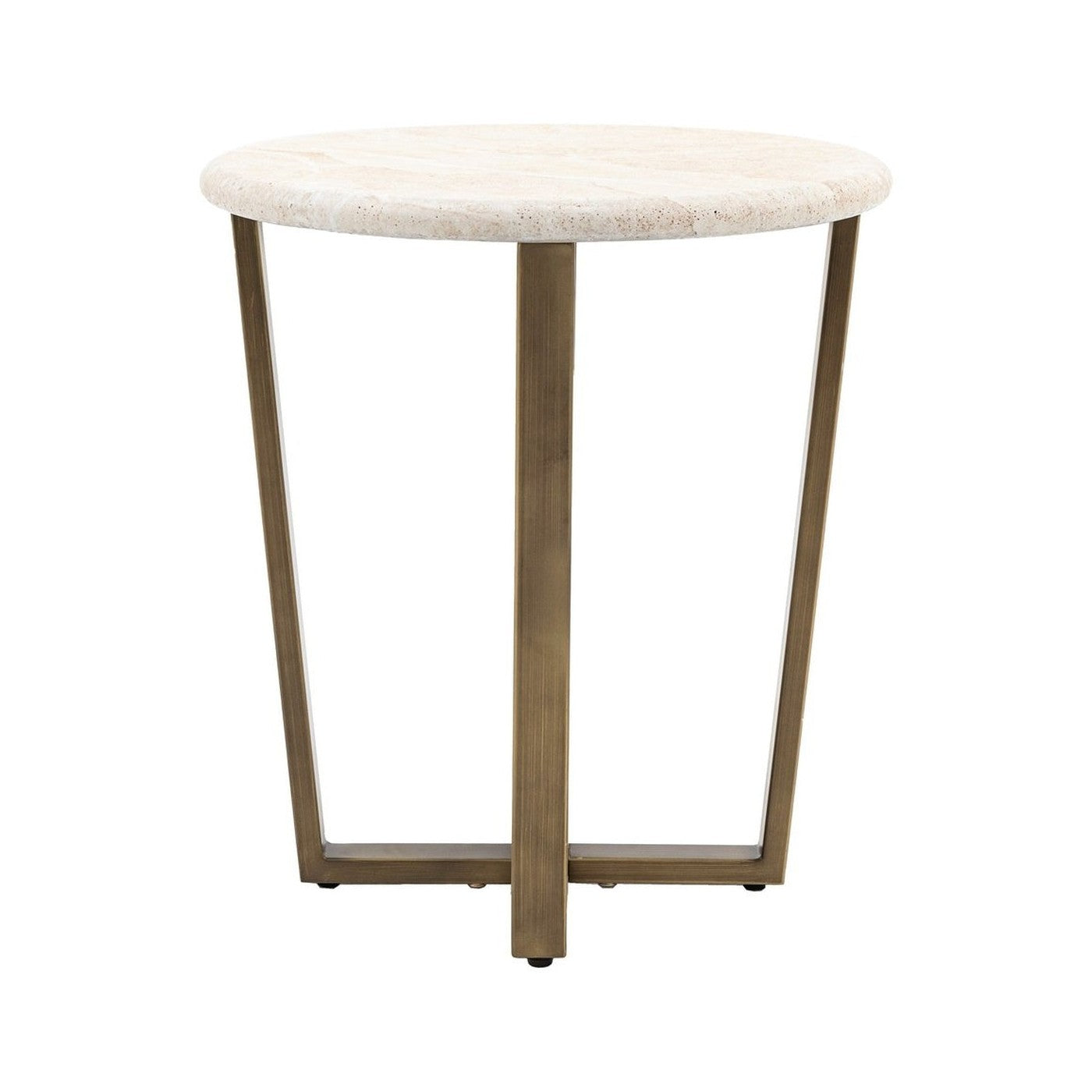 This lovely side table will add a touch of sophisticated elegance to a room. The top features the most amazing travertine faux finish which is created with the latest state of the art technology to give the look and feel of the real thing but without the weight and technical difficulties. The faux travertine is perfectly complemented by the metal base which has a classy bronzed brass finish, to give an understated luxury style, perfect for any classic modern interior. Matching items also available.